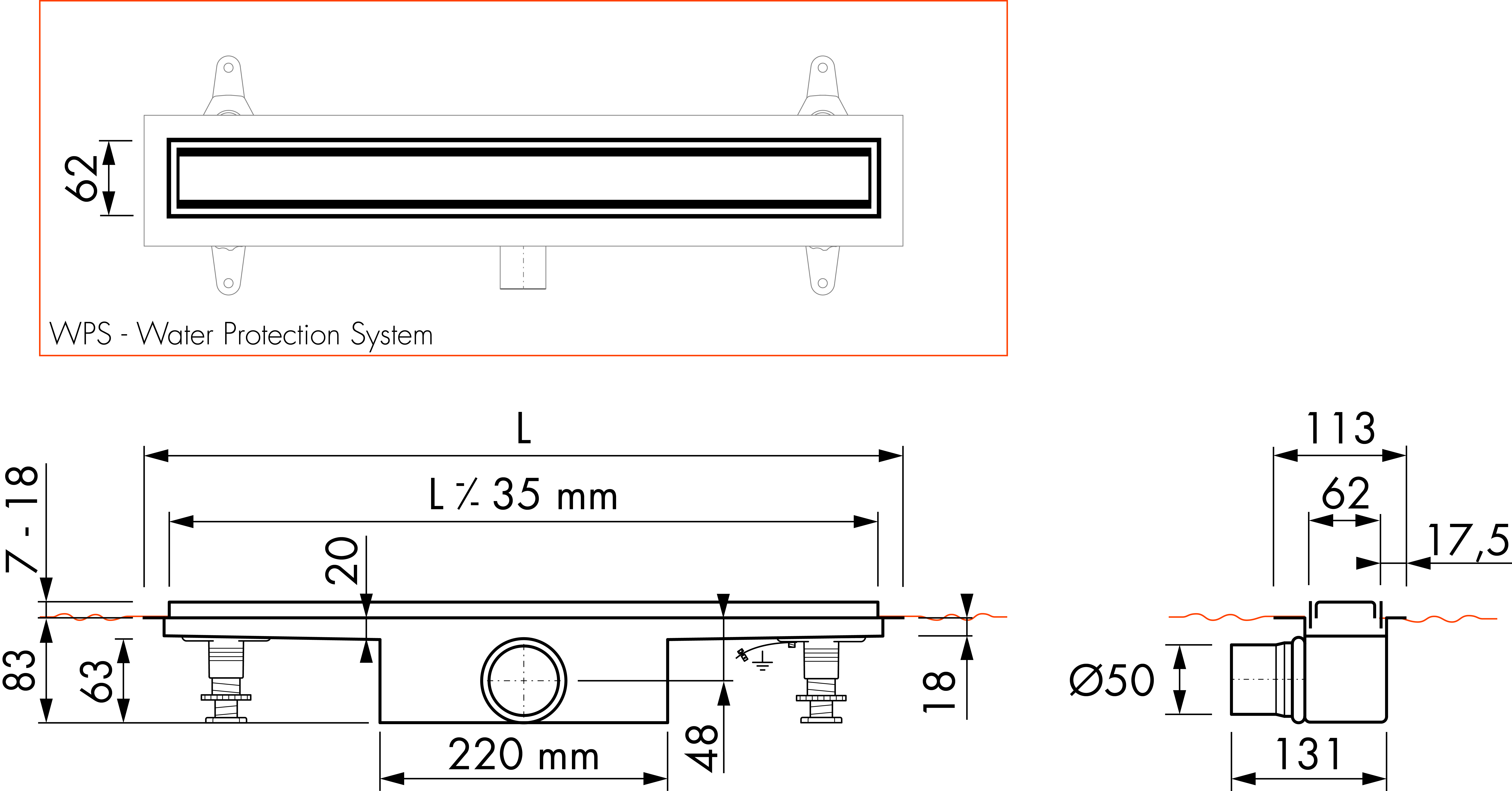 | Waterslot: | 50 mm |