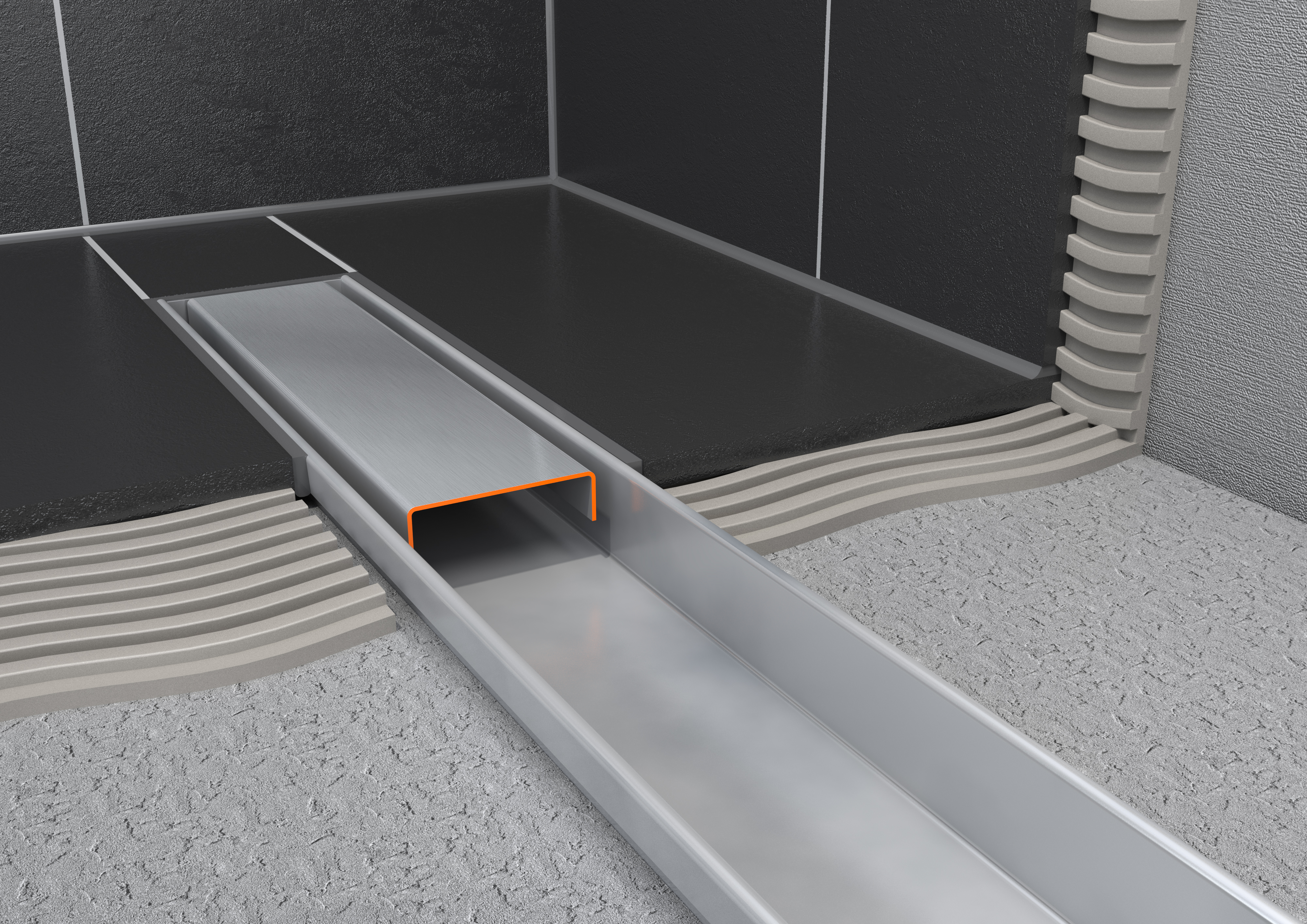 Easy Drain Compact TAF Black Modulo, de perfecte oplossing voor al uw badkamerwensen. De subtiele edelstaal afwerking geeft een prachtig aanzicht op de aansluiting met de vloer. Bovendien waarborgt het TAF systeem dat al het water wordt afgevoerd, waardoor waterdichtheid is gegarandeerd.
