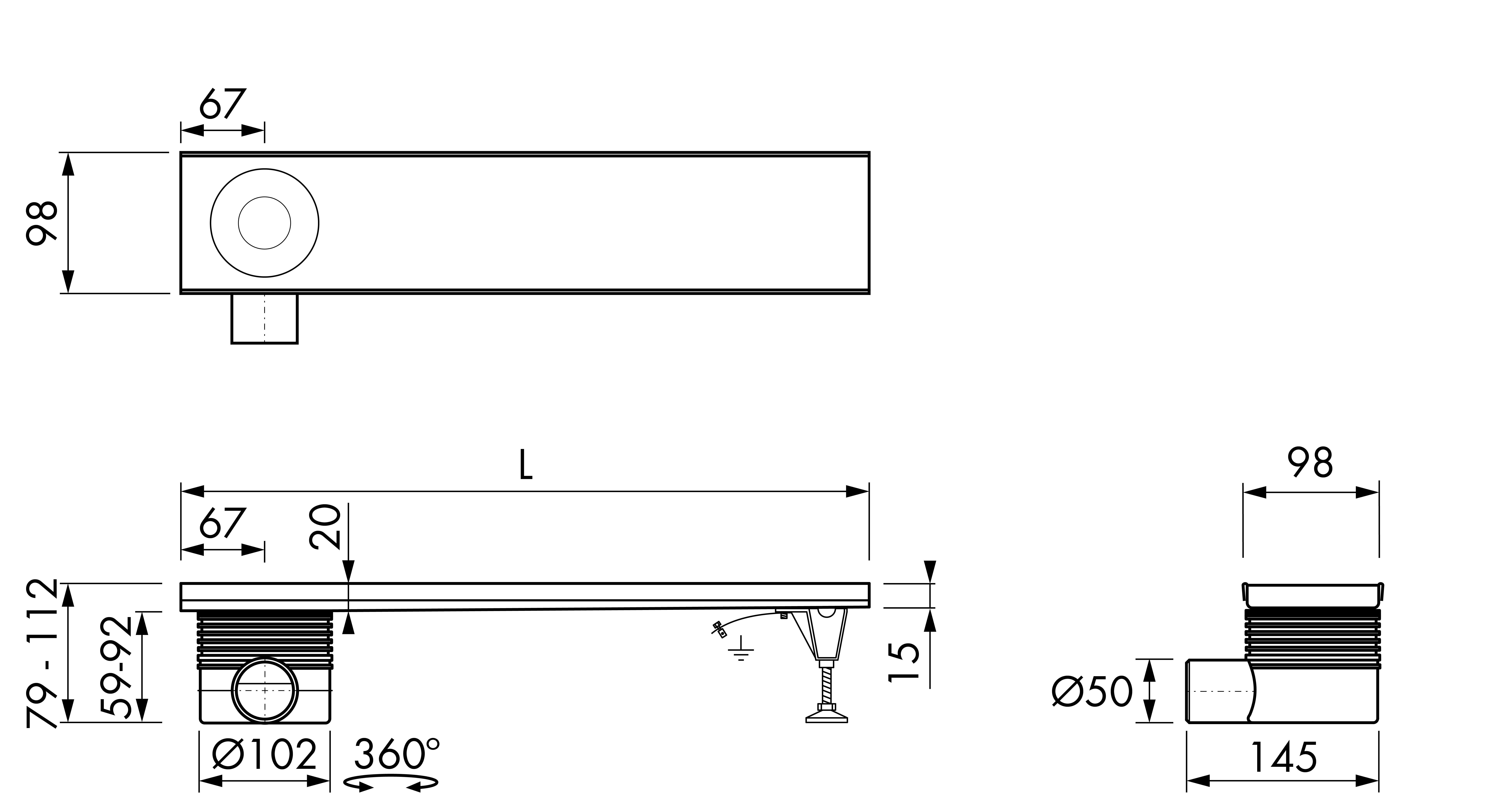 Easy Drain Multi Inbouwdeel 90 cm uitloop zijkant (excentrisch) EDMIOS900
