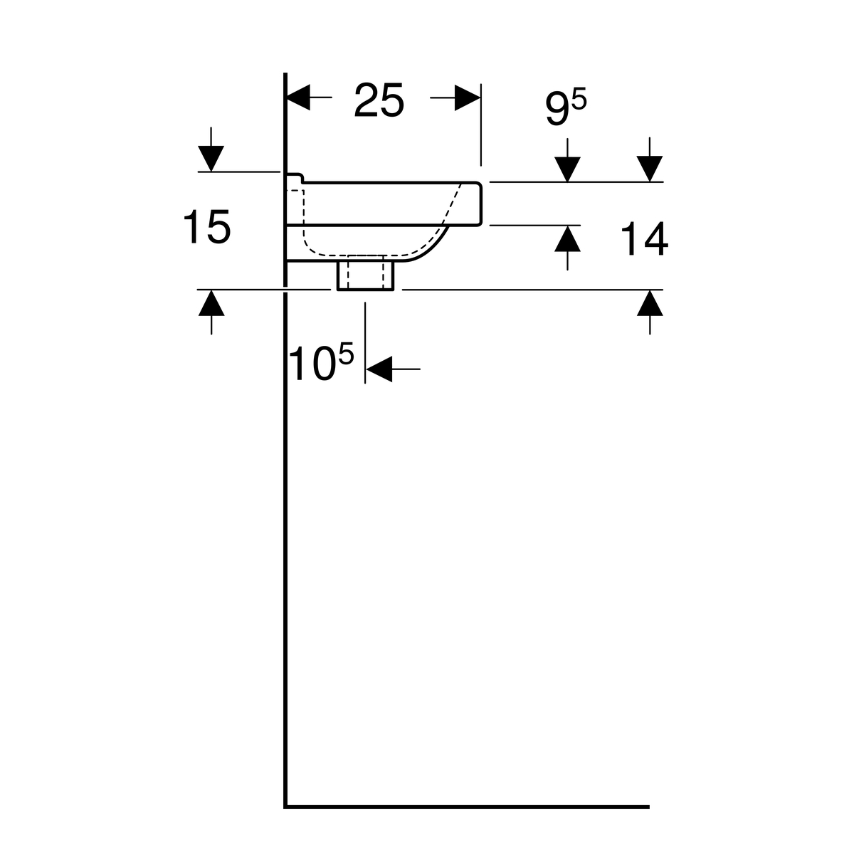 Geberit 300 Basic fontein met asymmetrische overloop: 36x15x25cm, Wit, kraangat rechts, overloop zichtbaar