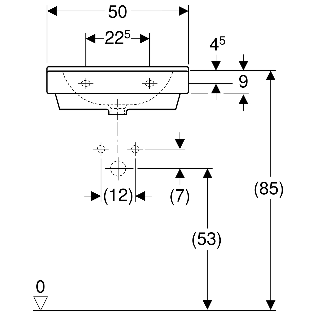 Geberit 300 Basic wastafel 50x38cm z.krgt. m.overl. S8300105001G Wit Tect