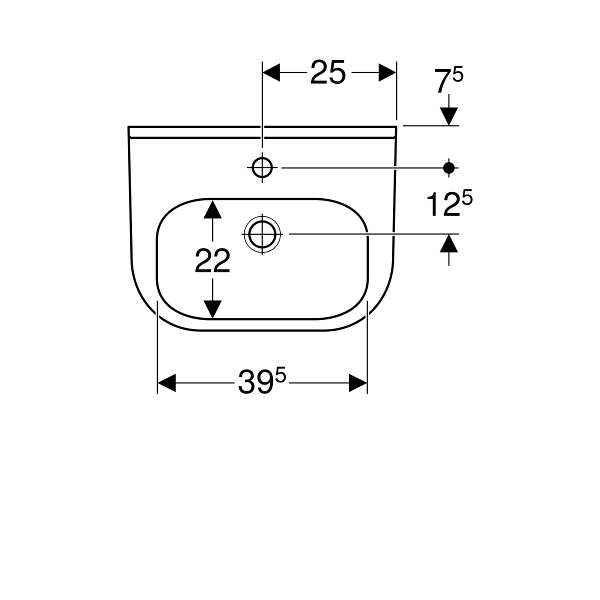 Geberit 300 Basic fontein met asymmetrische overloop: 50x39cm, Gecentreerd kraangat, zonder overloop, Wit / KeraTect