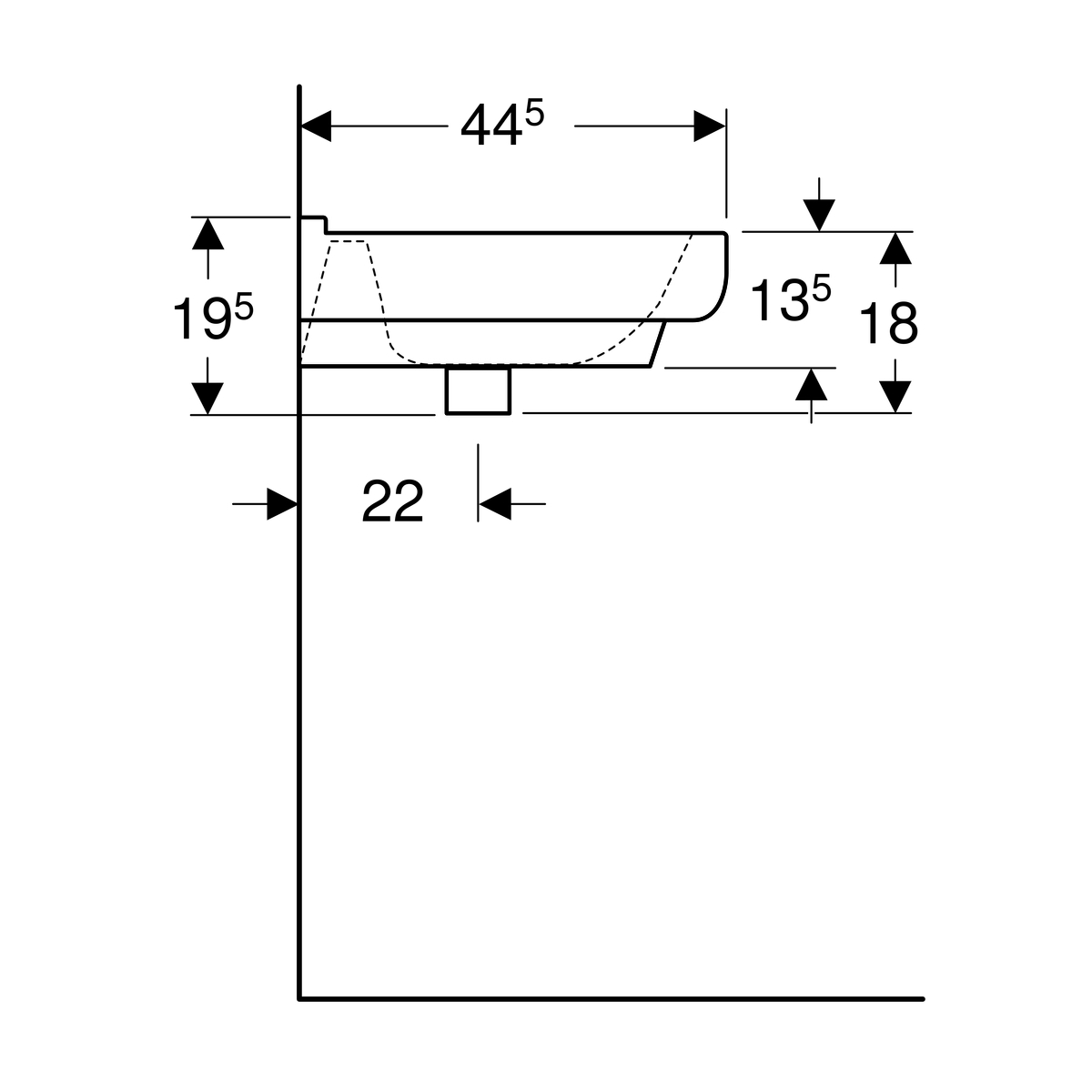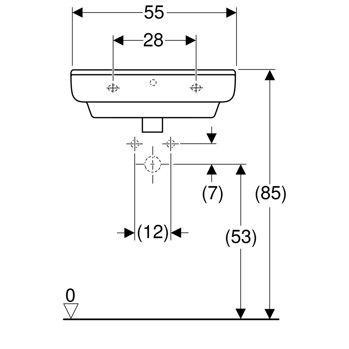 Geberit 300 Basic wastafel: 55x44.5cm, zonder kraangat, overloop zichtbaar, Wit / KeraTect