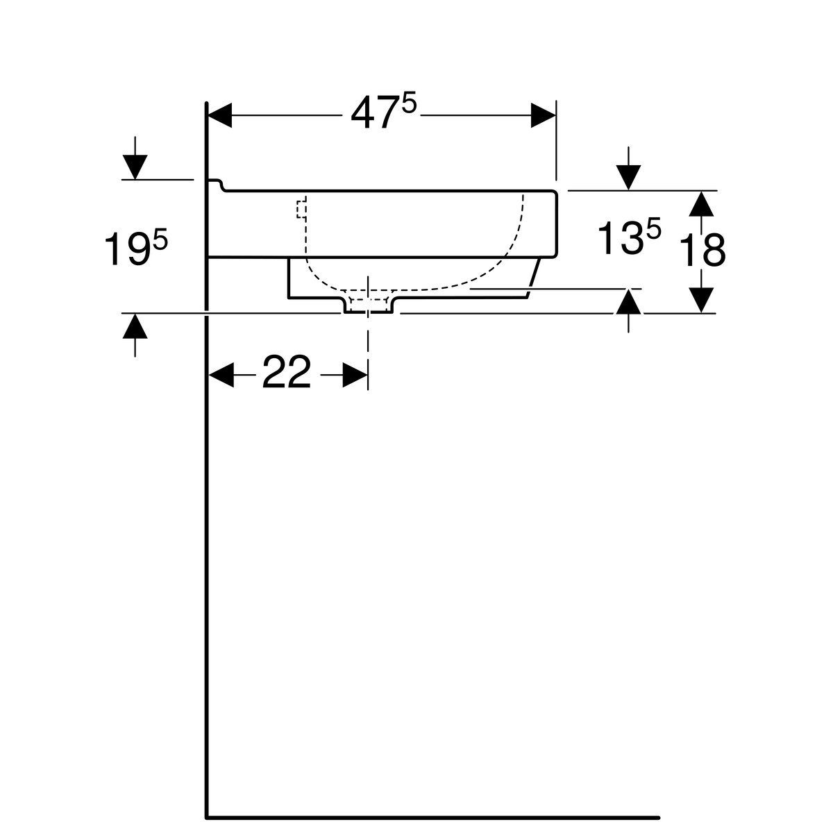 Geberit 300 Basic wastafel: 60x47.5cm, zonder kraangat, overloop zichtbaar, Wit / KeraTect