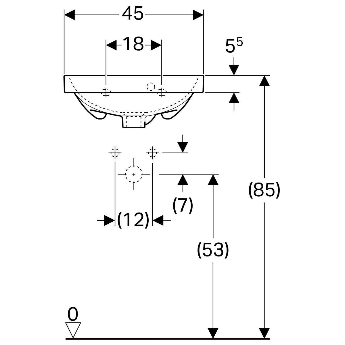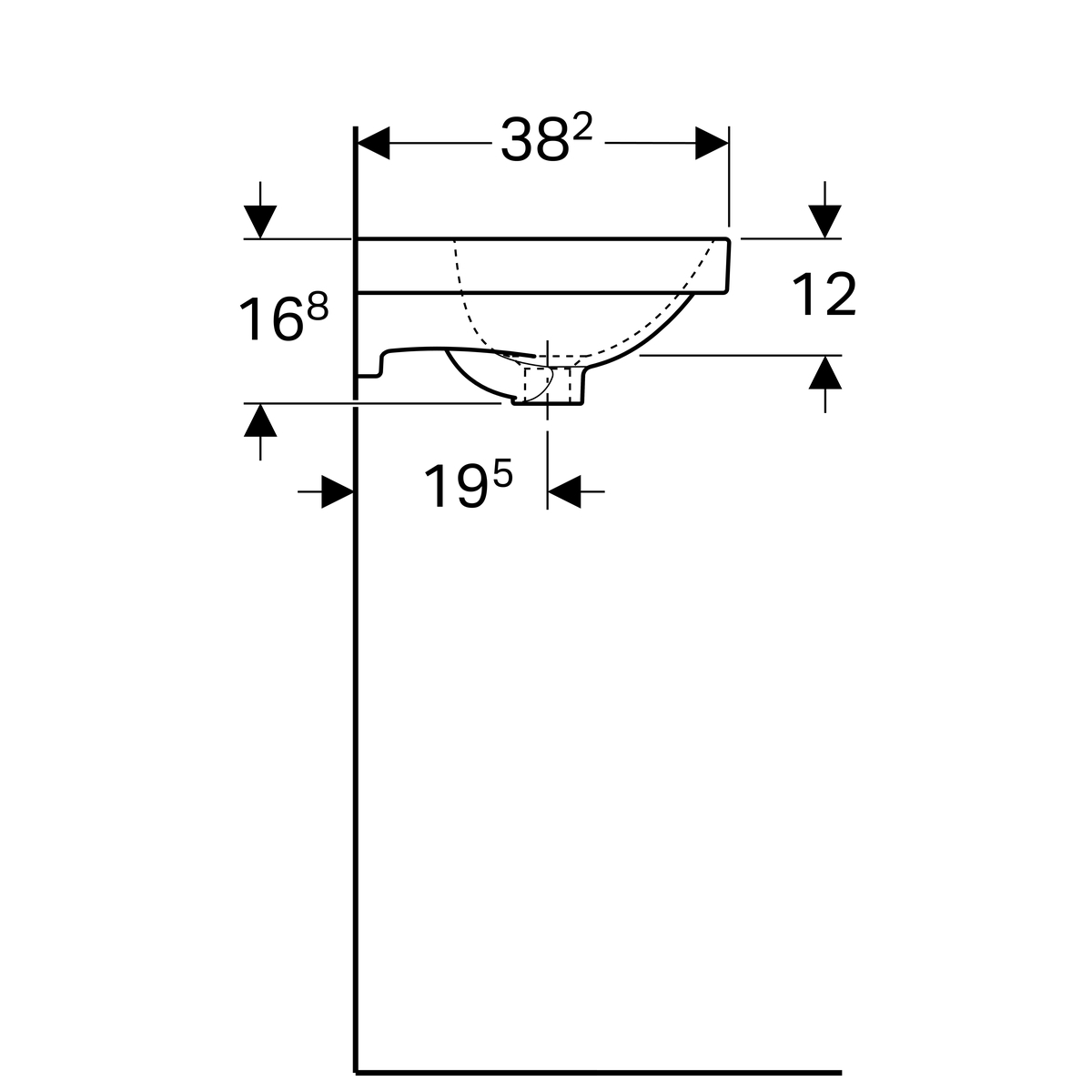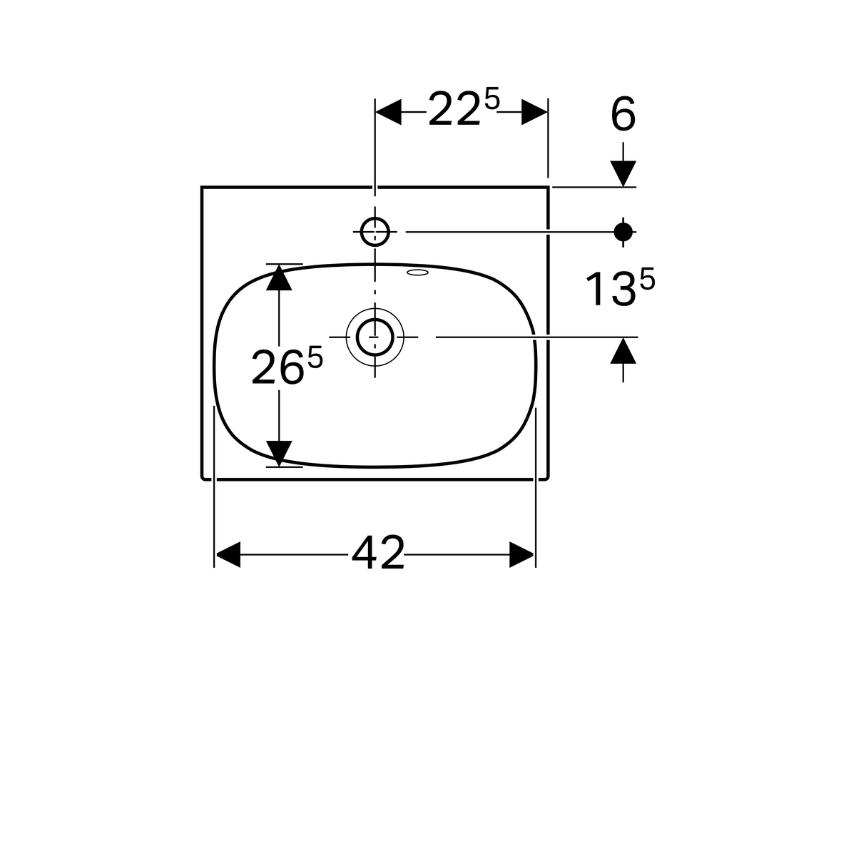 Geberit Acanto fontein: 45x17x38cm, Wit, Gecentreerd kraangat, overloop zichtbaar
