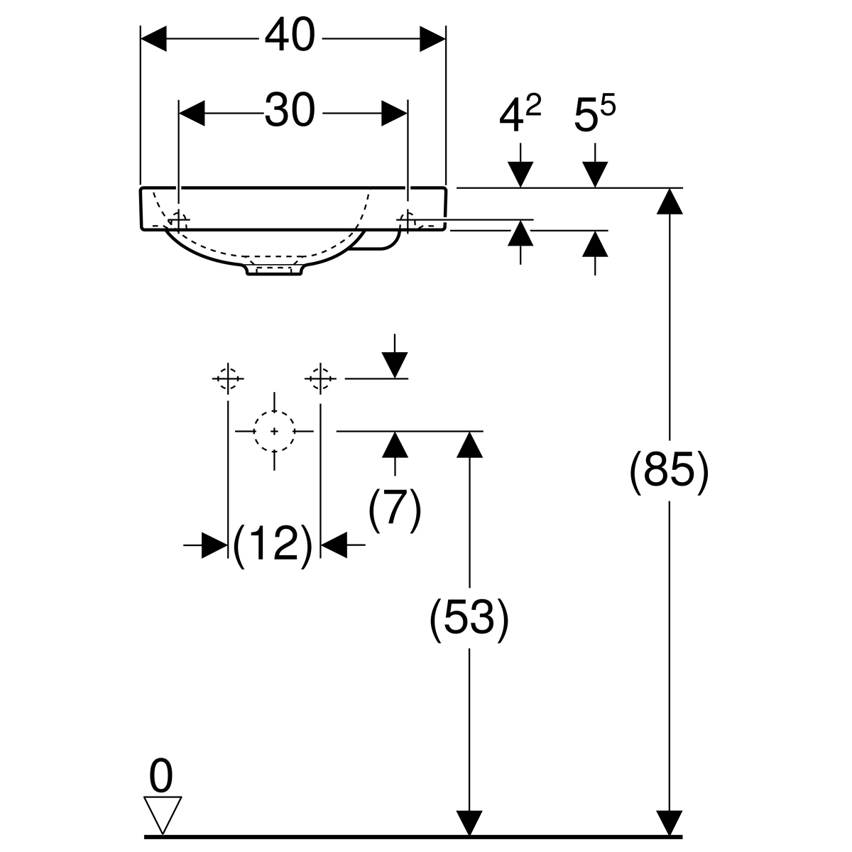 Geberit Acanto fontein kraangat rechts: 40x11.5x25cm, Wit / KeraTect, kraangat rechts, zonder overloop