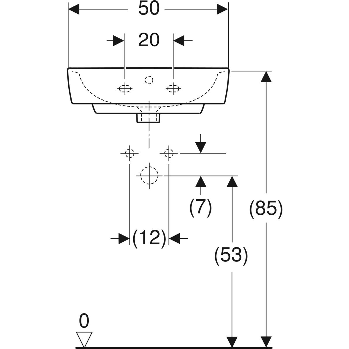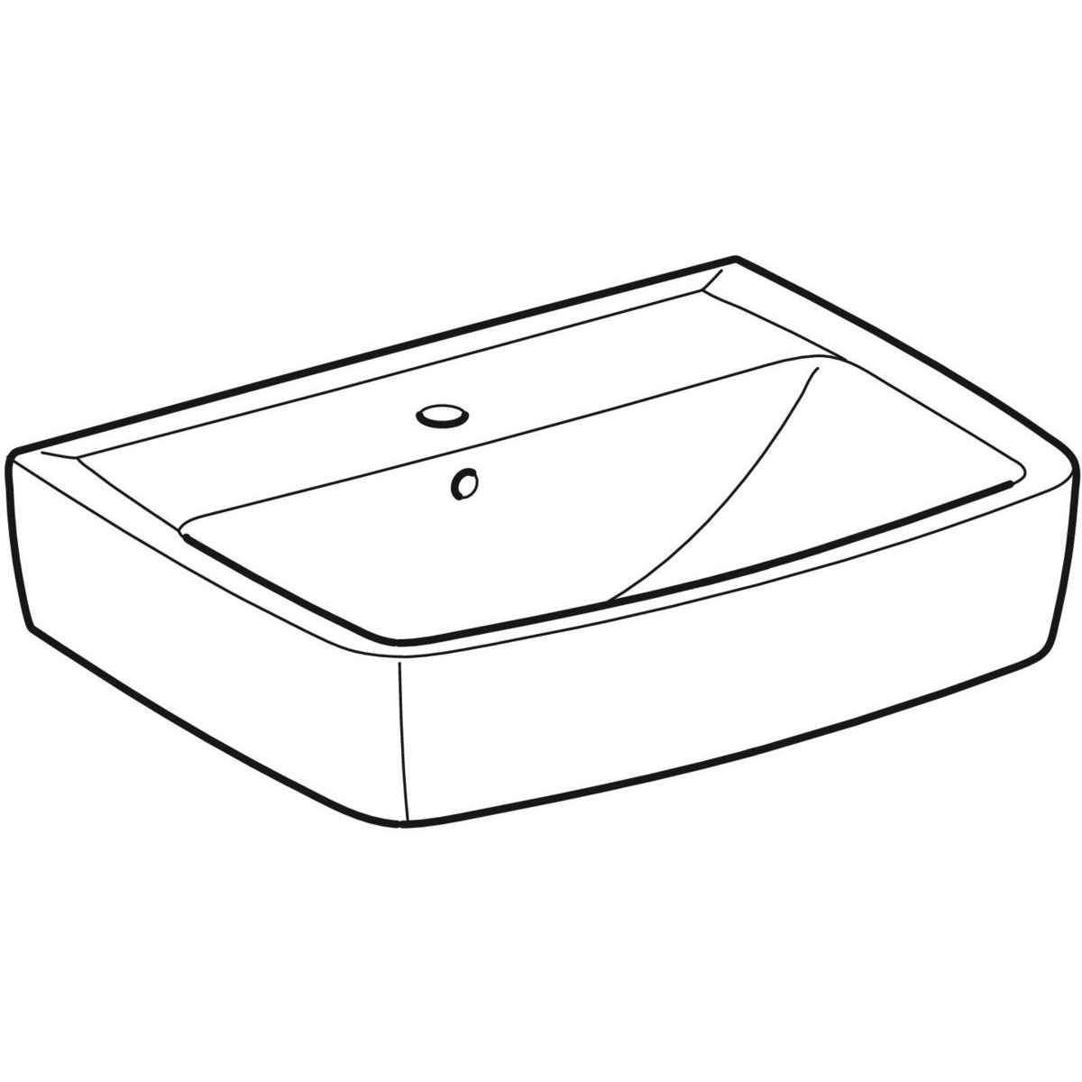 Geberit Bastia fontein hoekig design: 50x38cm, Gecentreerd kraangat, overloop zichtbaar, Wit
