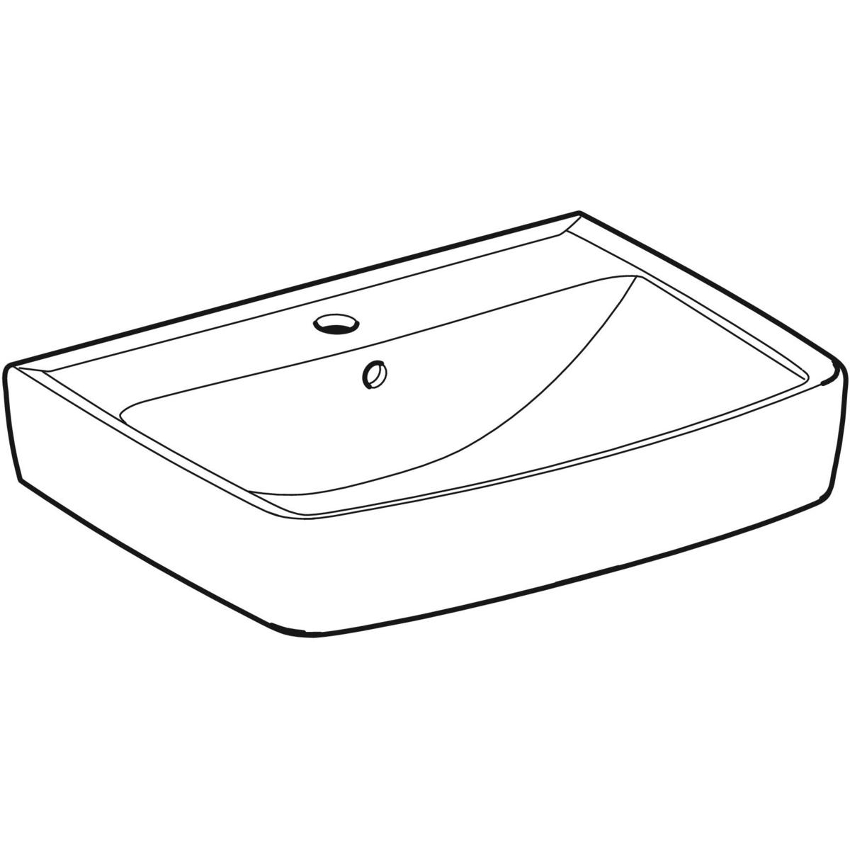 Geberit Bastia wastafel hoekig design: 60x45cm, Gecentreerd kraangat, overloop zichtbaar, Wit