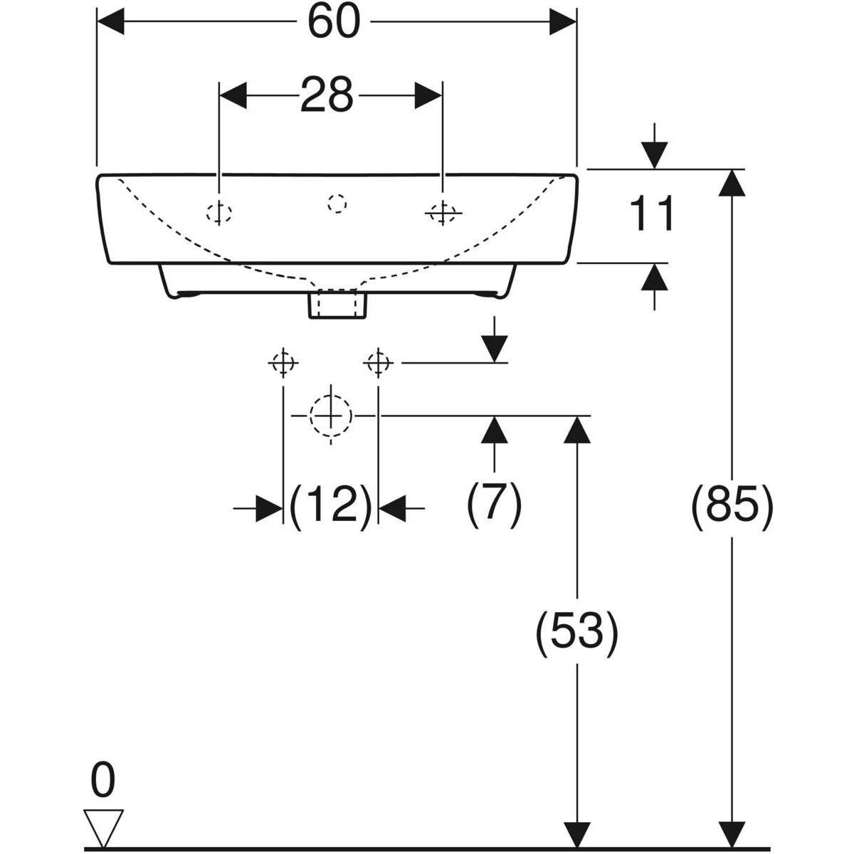 Geberit Bastia wastafel square 60cm met kraangat met overloop wit 502.923.00.1