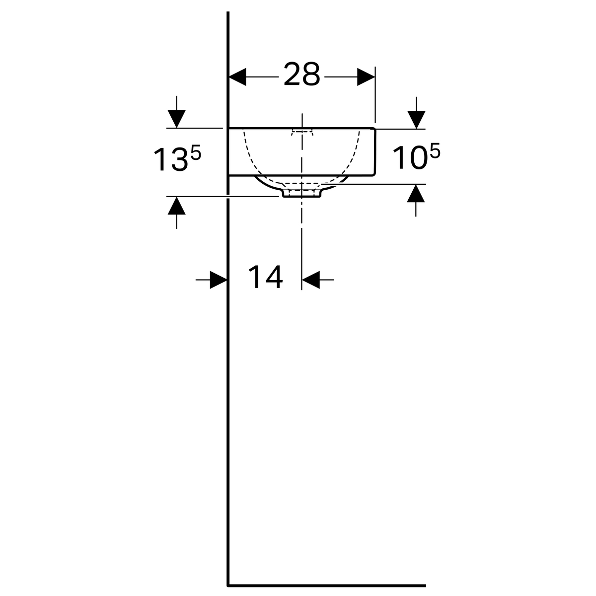 Geberit iCon fontein: 38x13.5x28cm, Wit, kraangat links, zonder overloop