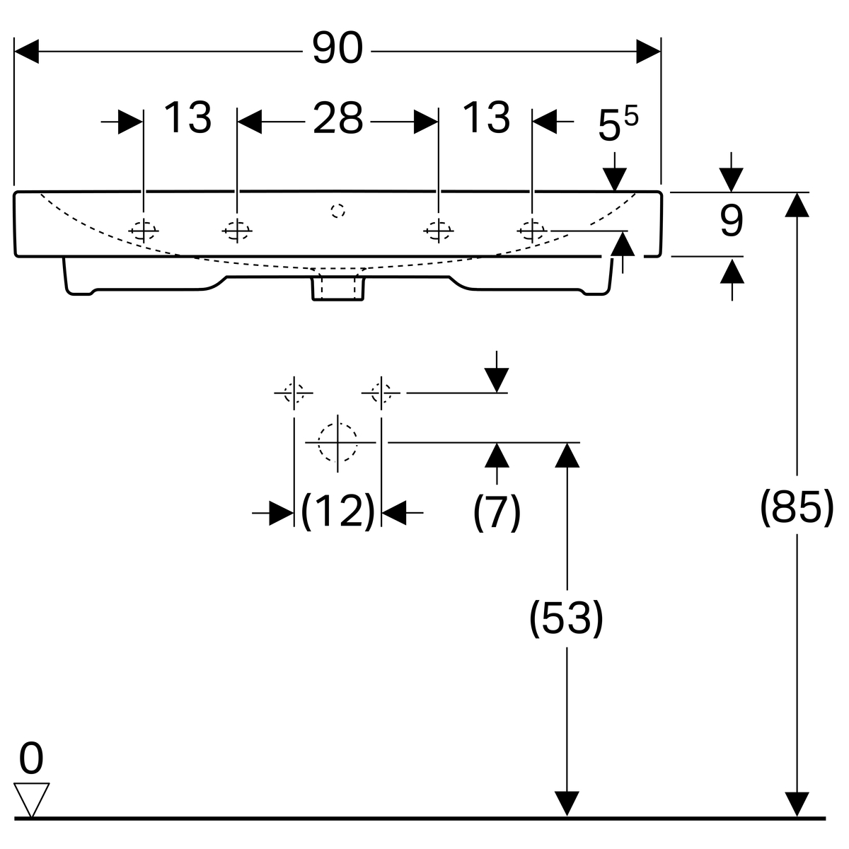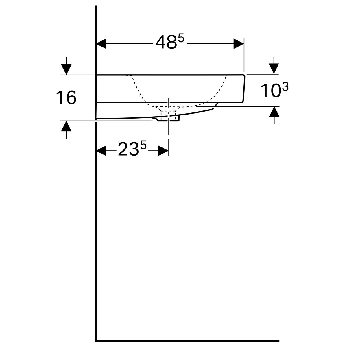 Geberit iCon wastafel: 90x48.5cm, zonder kraangat, overloop zichtbaar, Wit / KeraTect
