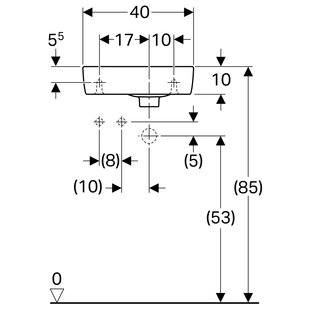 Geberit Renova Compact fontein kleine sprong: 40x15x25cm, Wit / KeraTect, kraangat links, overloop zichtbaar, Aflegvlak=Zonder