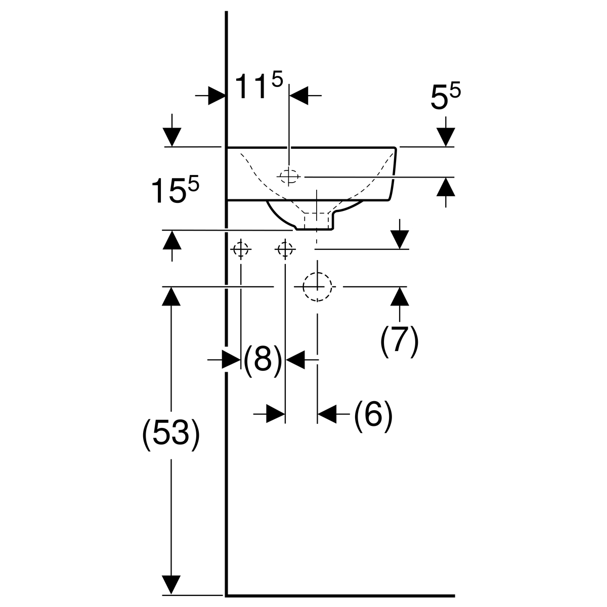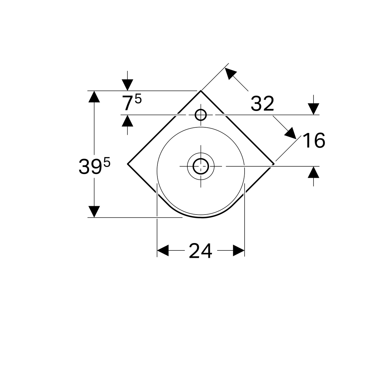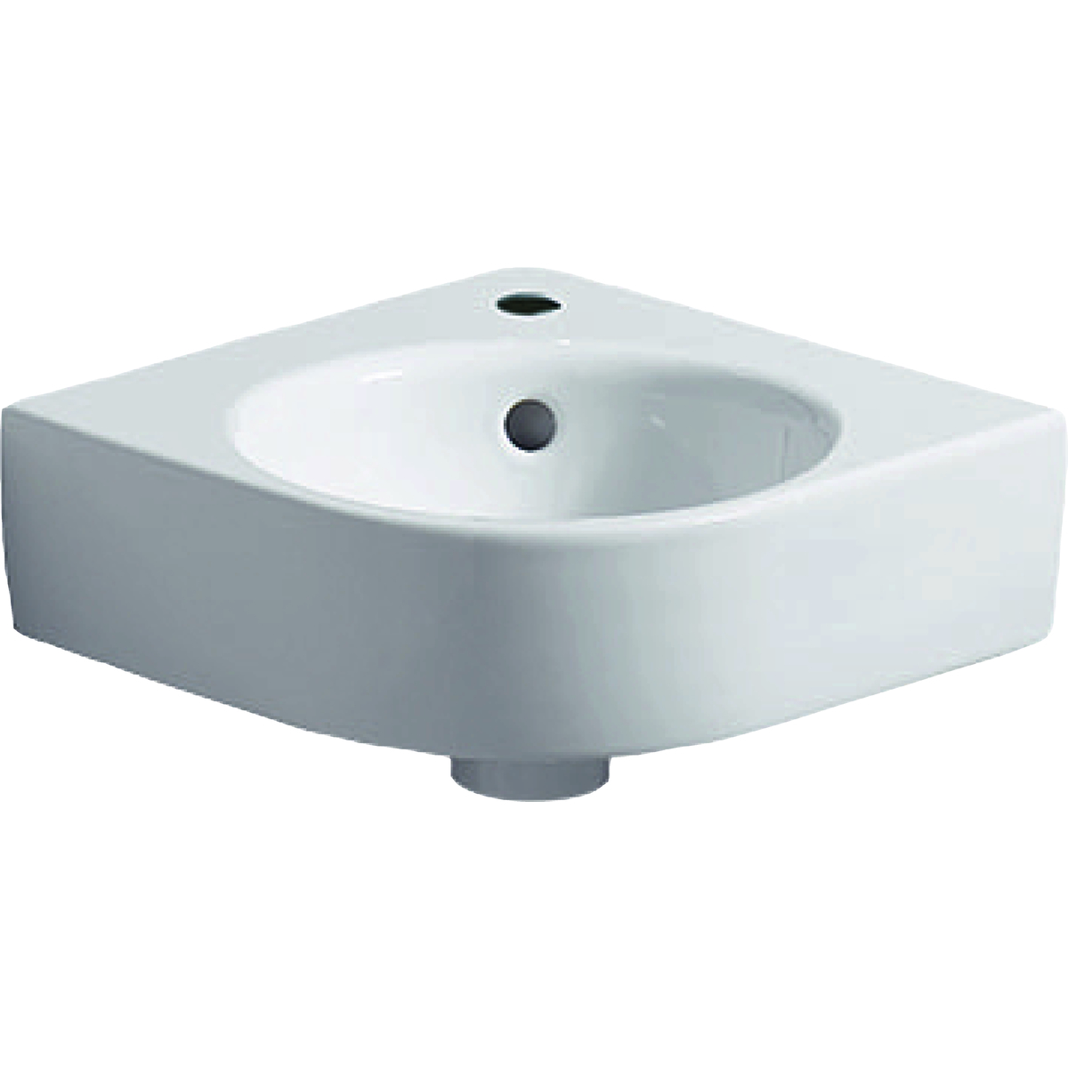 Geberit Renova Compact hoekfontein: 45x39.5cm, Gecentreerd kraangat, overloop zichtbaar, Wit / KeraTect