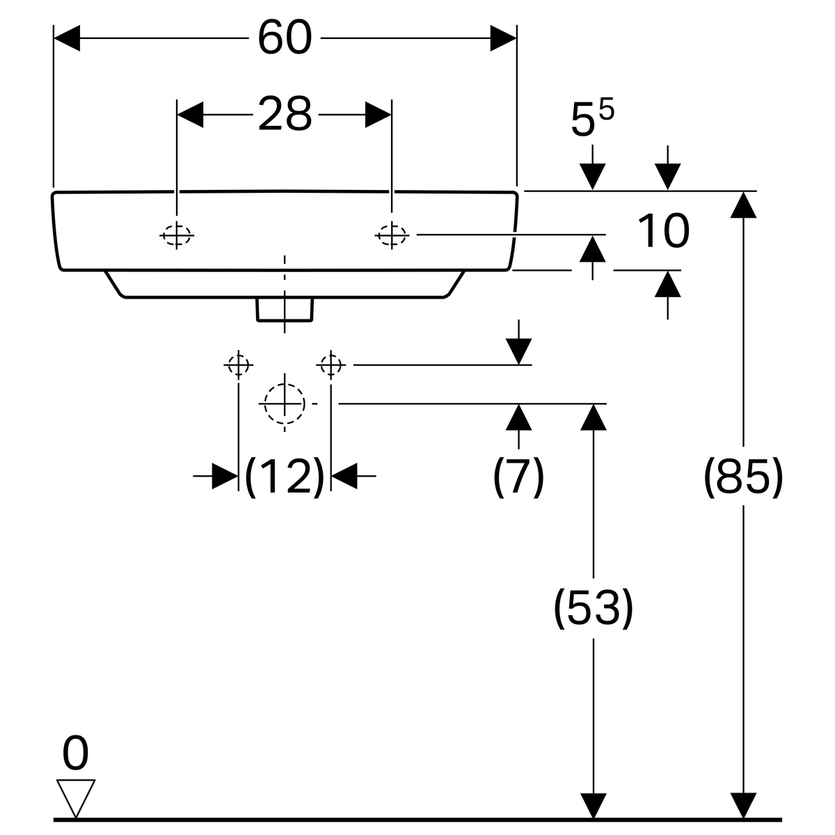 Geberit Renova Compact wastafel: 60x37cm, Gecentreerd kraangat, overloop zichtbaar, Wit / KeraTect