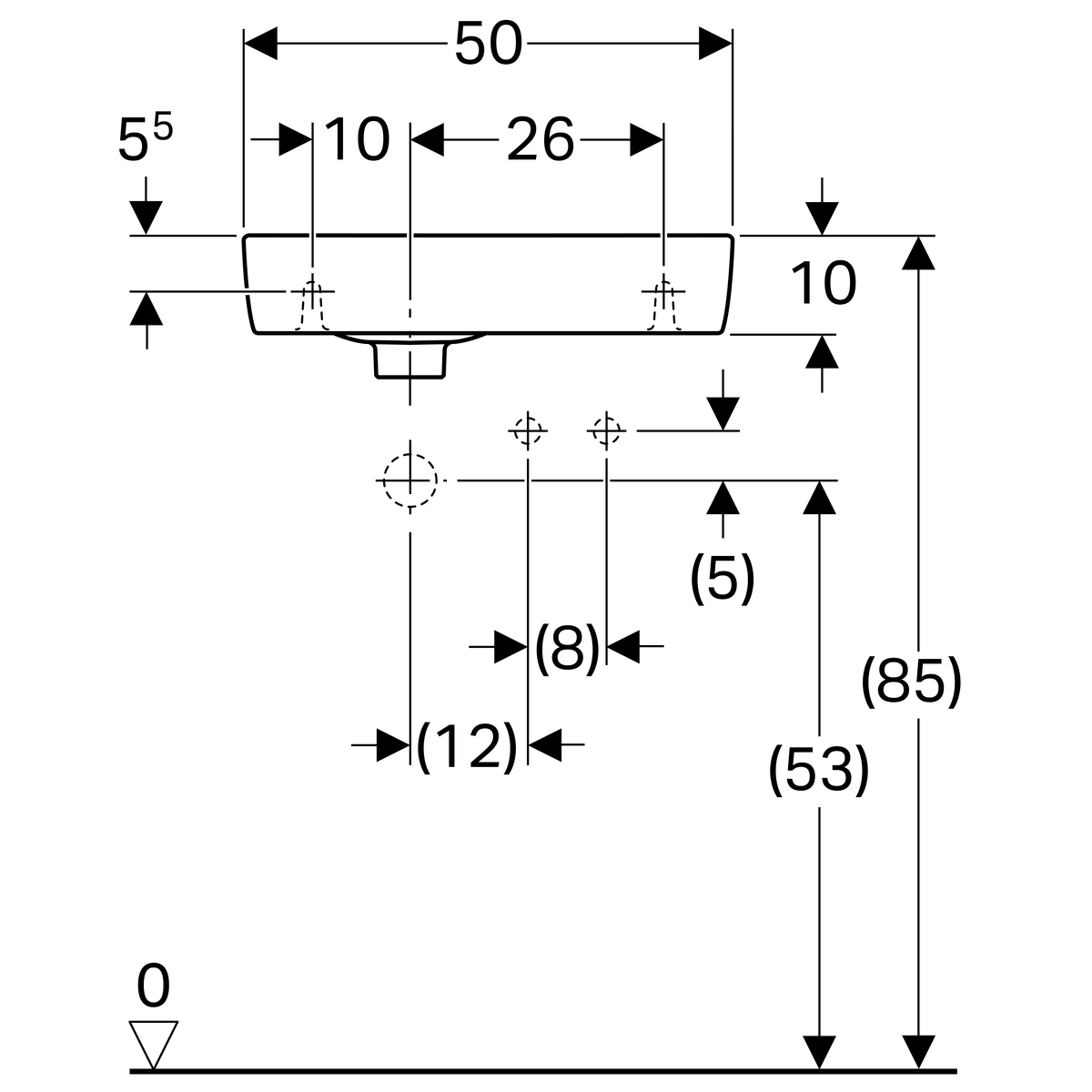 Geberit Renova Compact fontein kleine sprong: 50x15x25cm, Wit, kraangat rechts, overloop zichtbaar, Aflegvlak=Zonder
