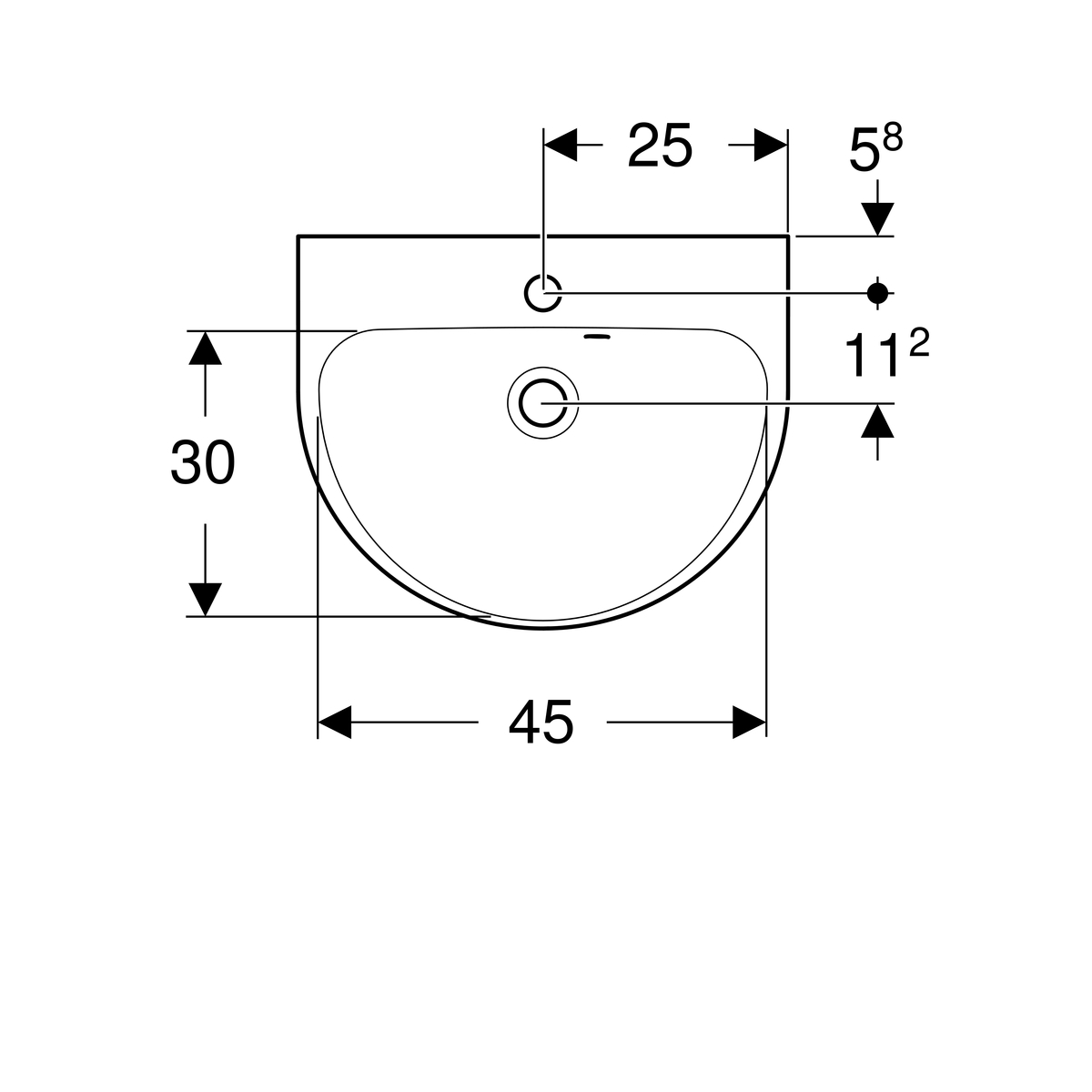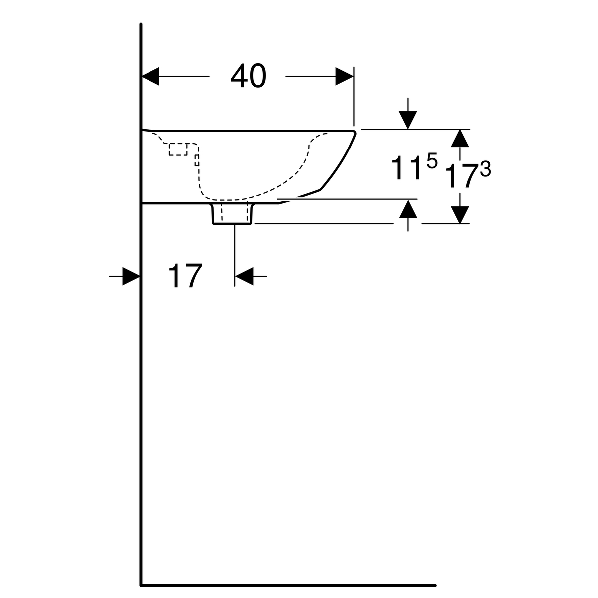Geberit Renova fontein: 50x17.5x40cm, Wit / KeraTect, Gecentreerd kraangat, overloop zichtbaar