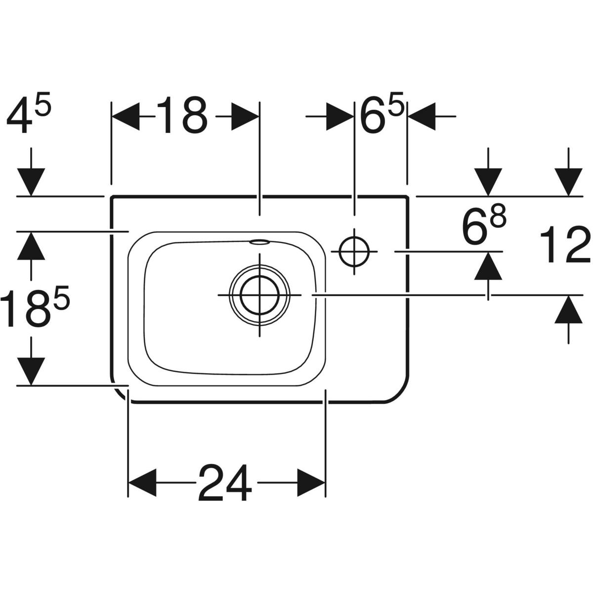 Geberit Renova Plan fontein 36x25cm kraangat rechts met overloop wit