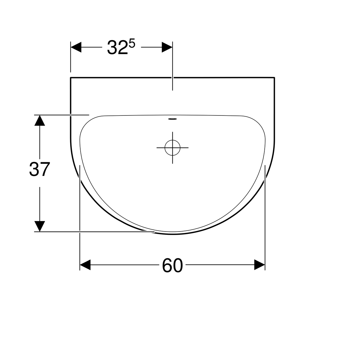 Geberit Renova wastafel: 65x50cm, zonder kraangat, overloop zichtbaar, Wit