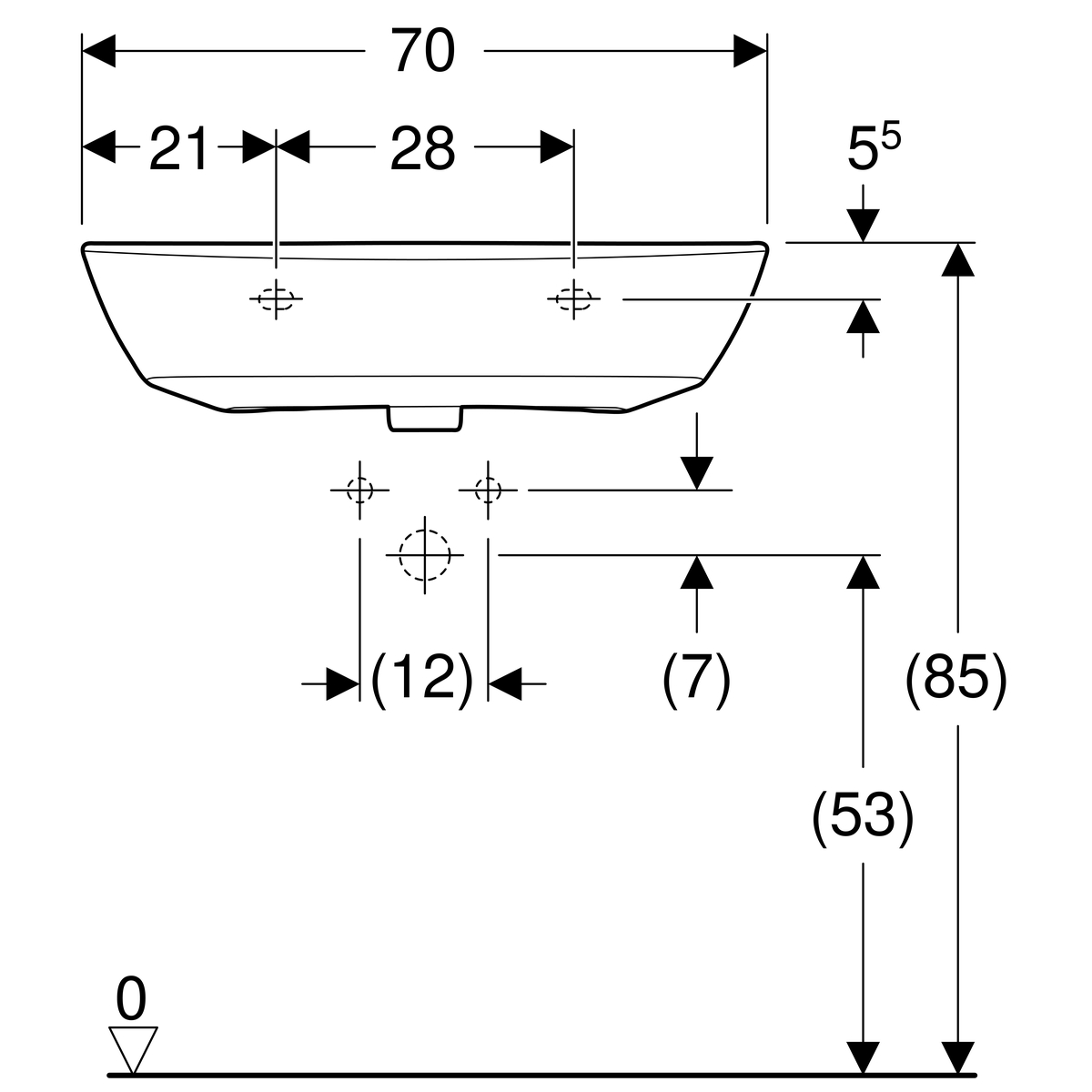 Geberit Renova wastafel: 70x52cm, zonder kraangat, overloop zichtbaar, Wit / KeraTect