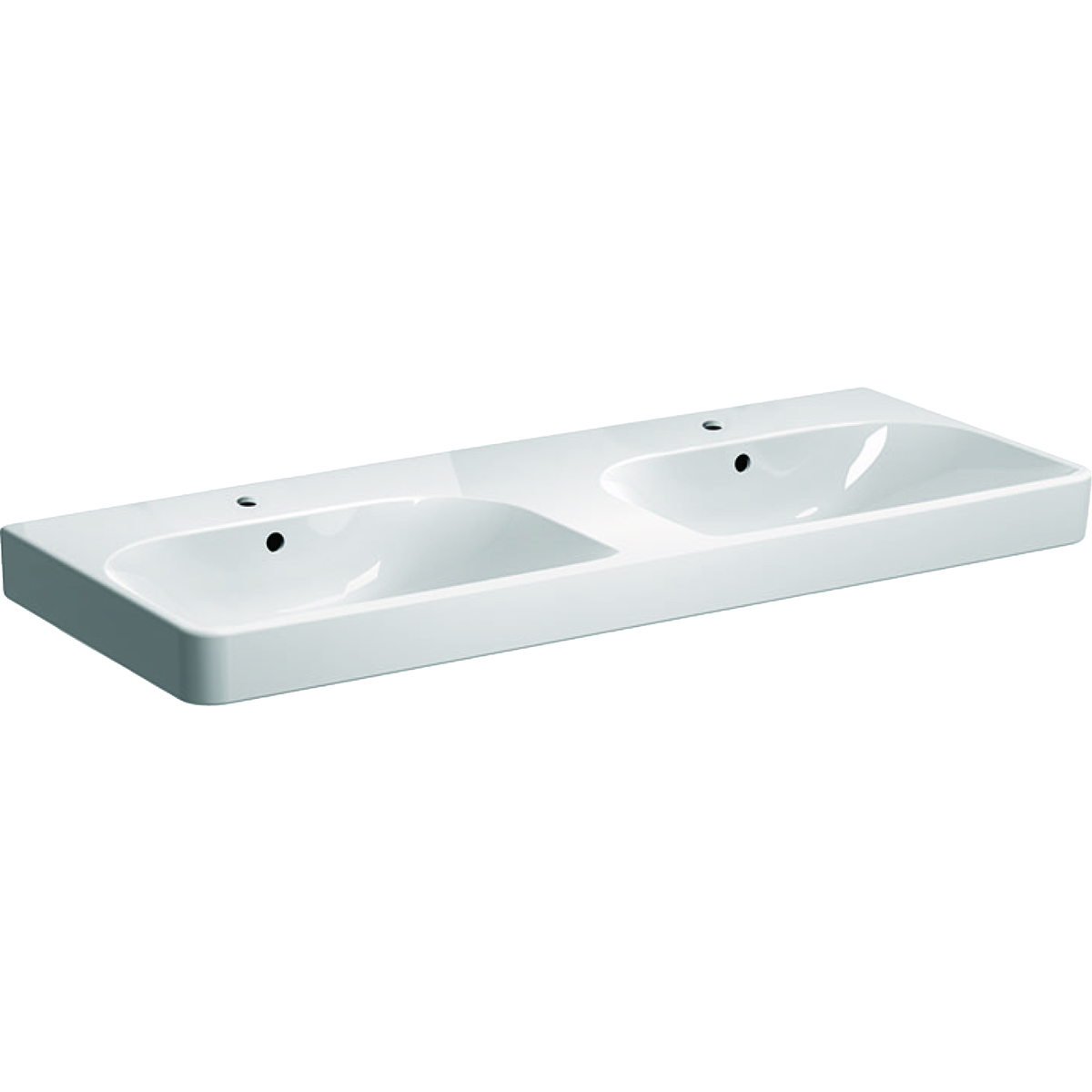 Geberit Smyle Square dubbele wastafel 120 cm 2 kraangaten met overloop 500.223.01.1 wit