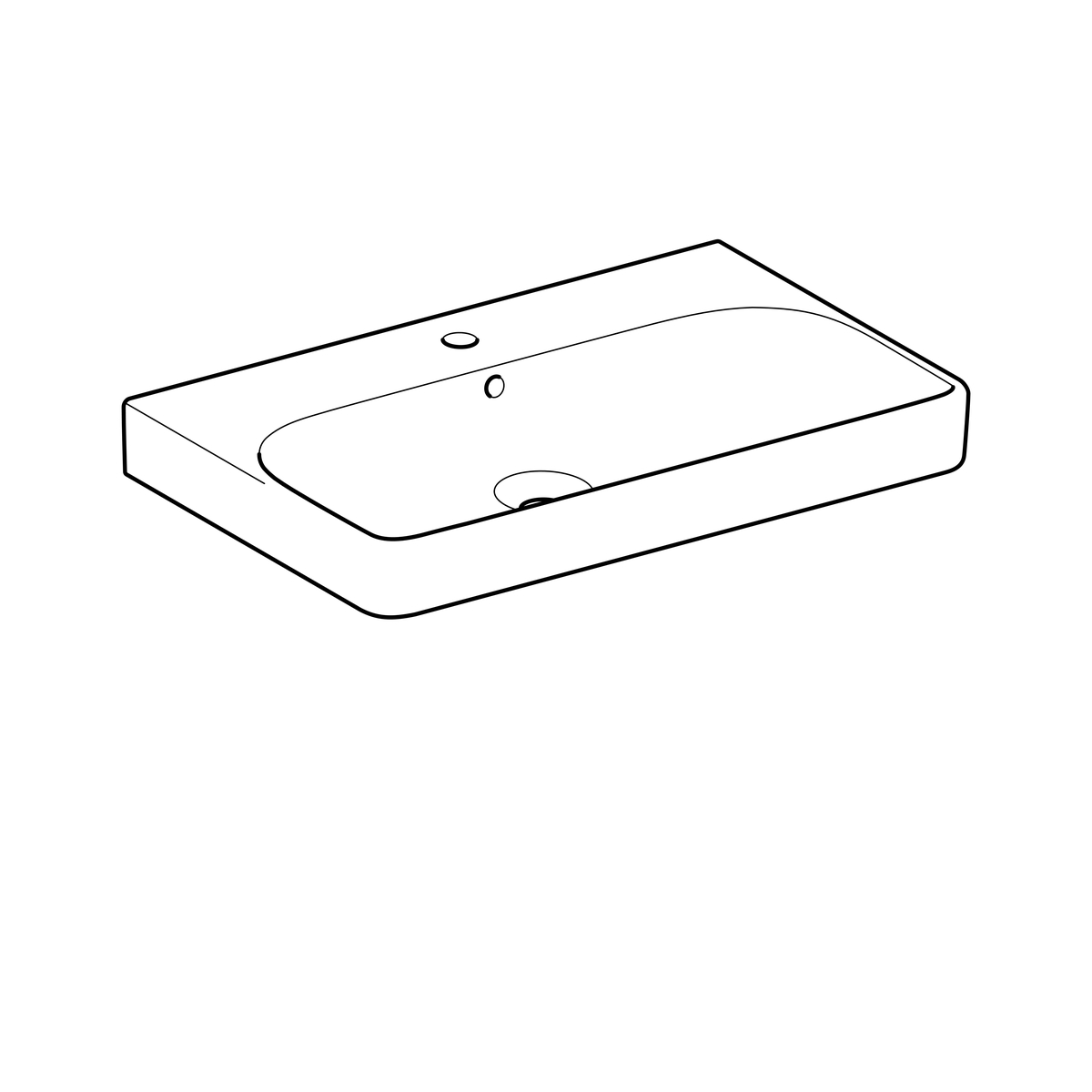 Geberit Smyle Square wastafel: 75x48cm, Gecentreerd kraangat, overloop zichtbaar, Wit / KeraTect
