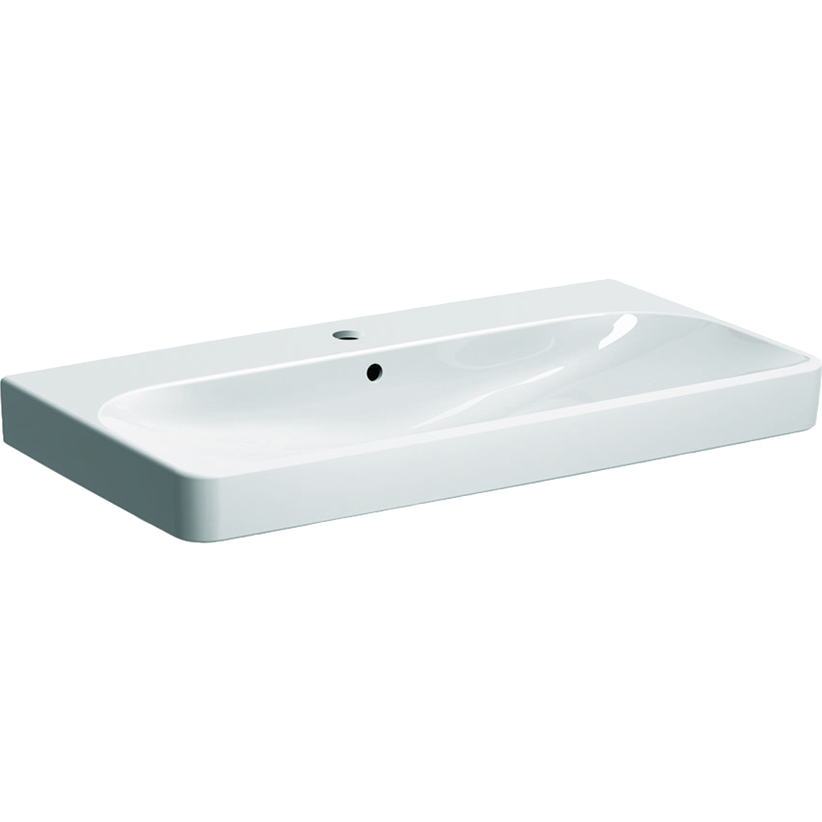 Geberit Smyle Square wastafel: 90x48cm, Gecentreerd kraangat, overloop zichtbaar, Wit