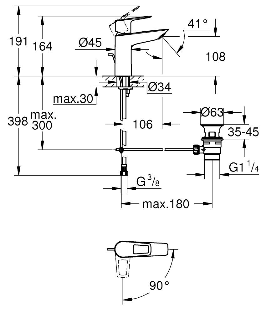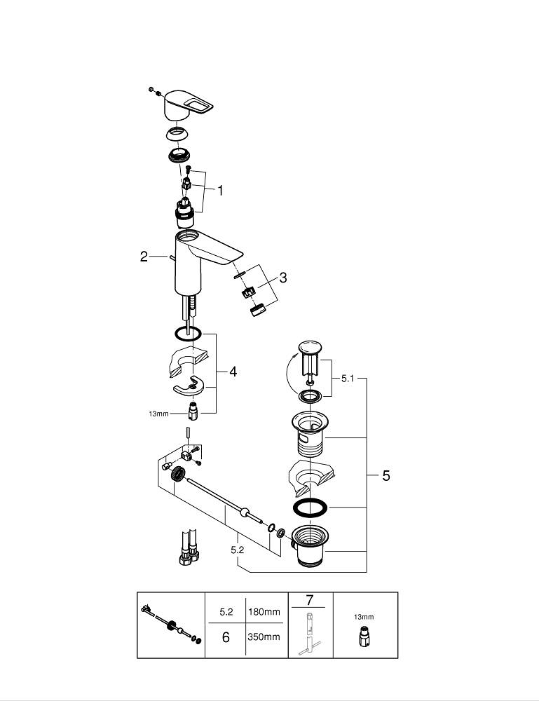 Grohe Bauloop m-Size wastafelmengkraan Es met waste 23887001