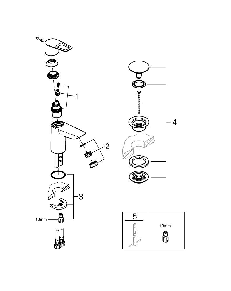 Grohe Bauloop S-Size wastafelmengkraan Es Push open 23883001