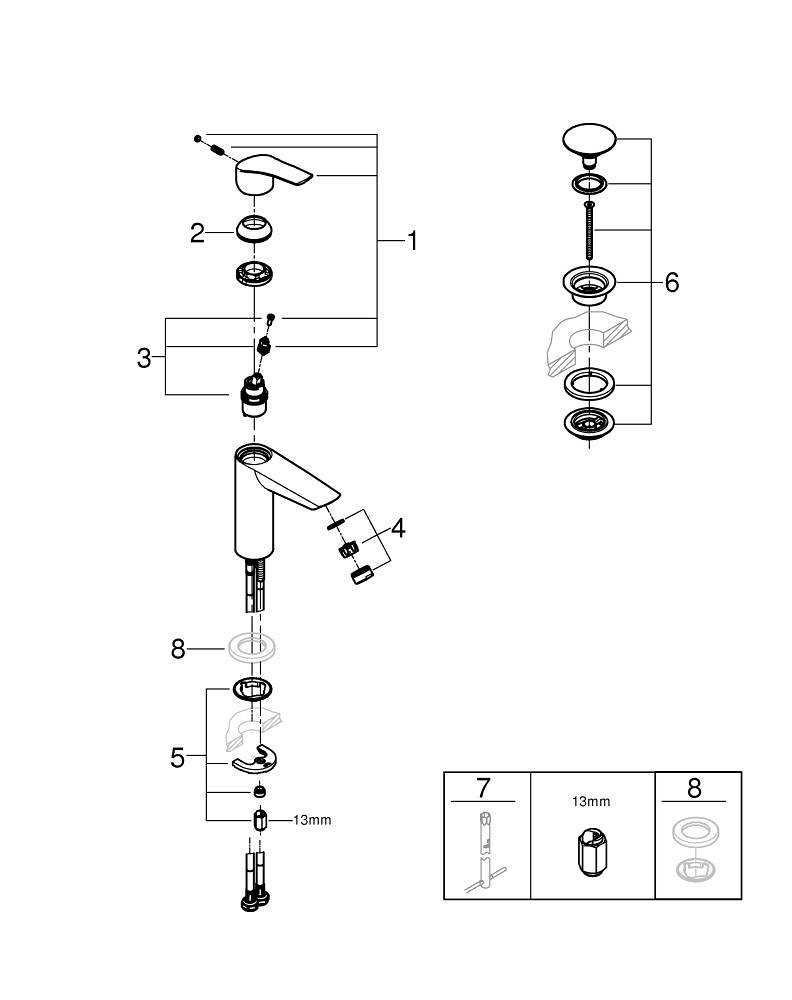 Grohe Eurosmart M-size wastafelmengkraan Push open 23923003