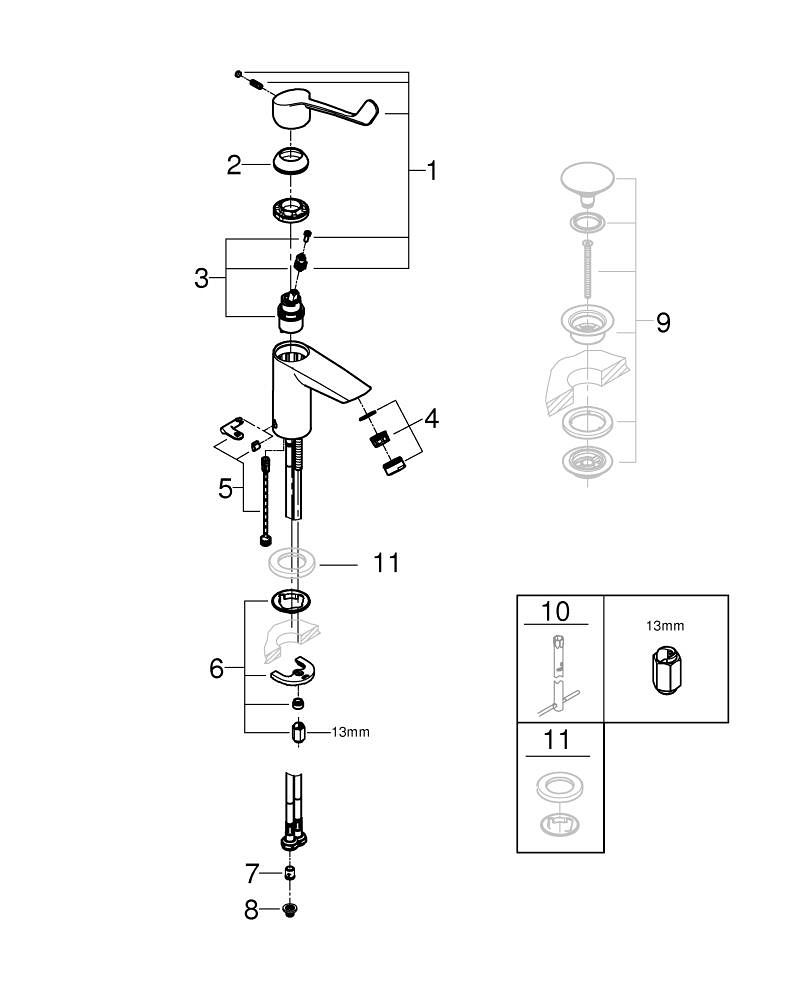 Grohe Eurosmart wastafelmengkraan s-size safety stop desinfectie Gladde Body 23984003