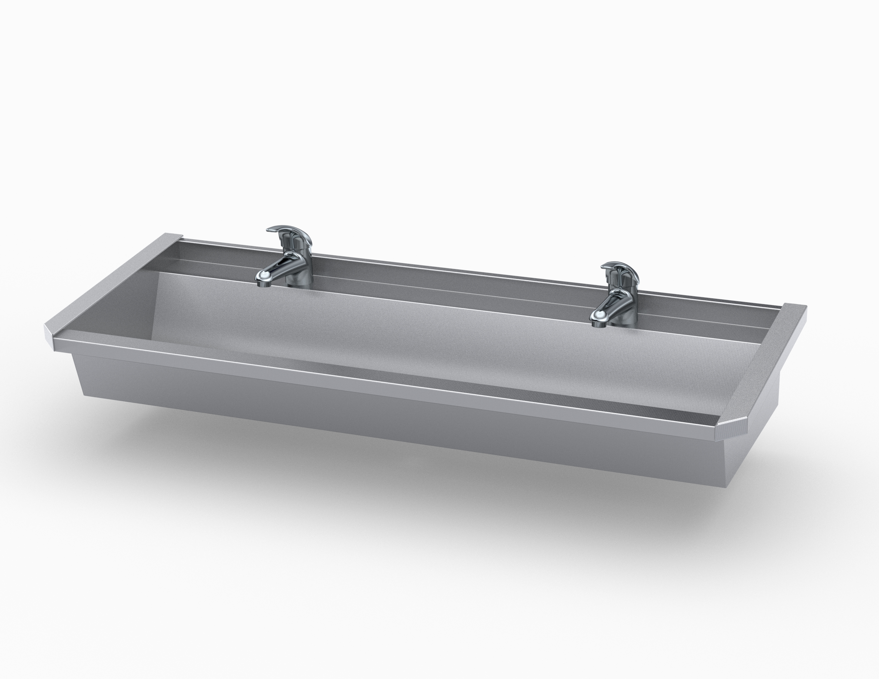 Muurwasgoot met losse spatwand 120 cm + 2 ééngreeps mengkranen Pentagono + 2 leidingen