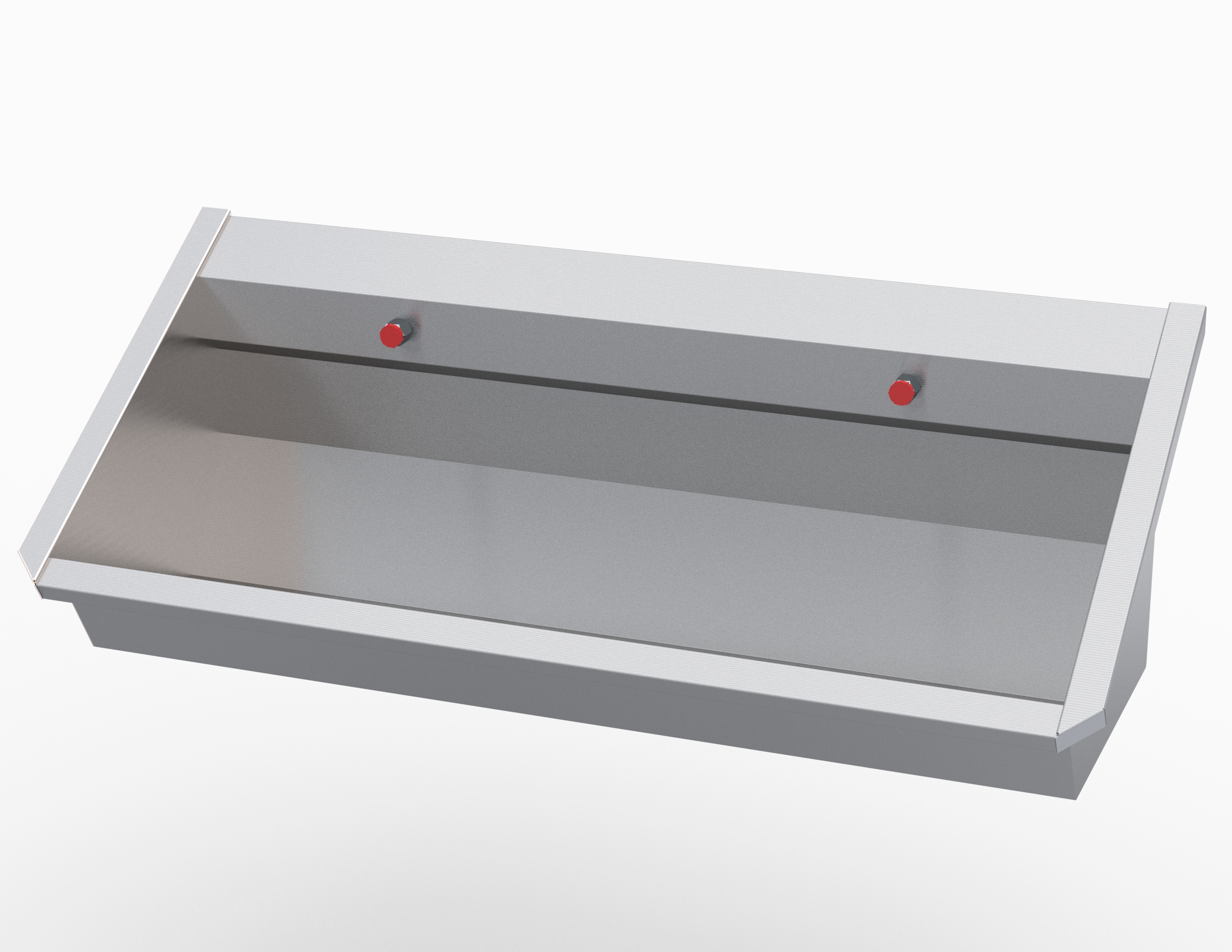Muurwasgoot, 120 cm + 2 kraanaansluitingen 1/2" F en 1 leiding