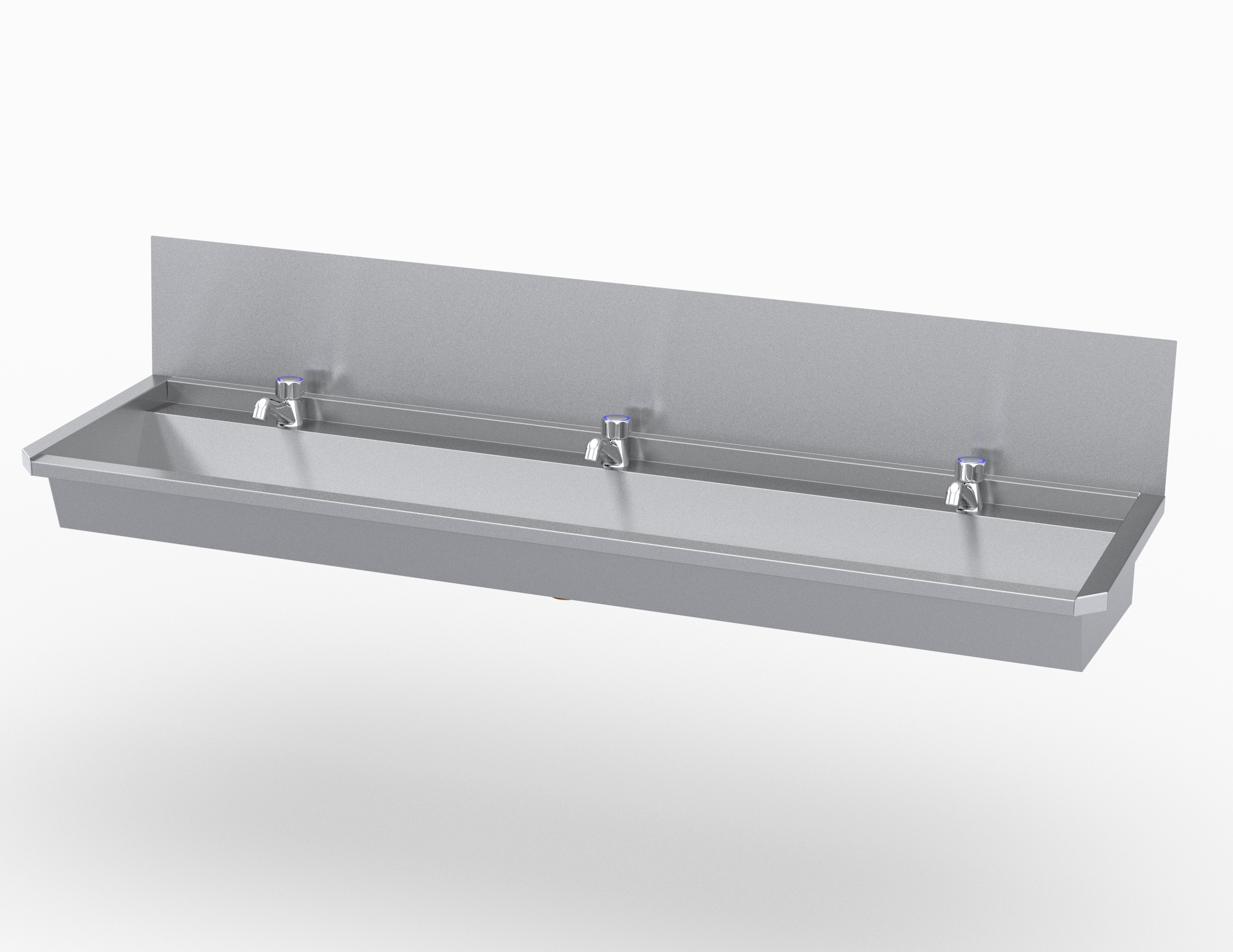 Muurwasgoot met losse spatwand 180 cm + 3 draaikranen Idral + 1 leiding