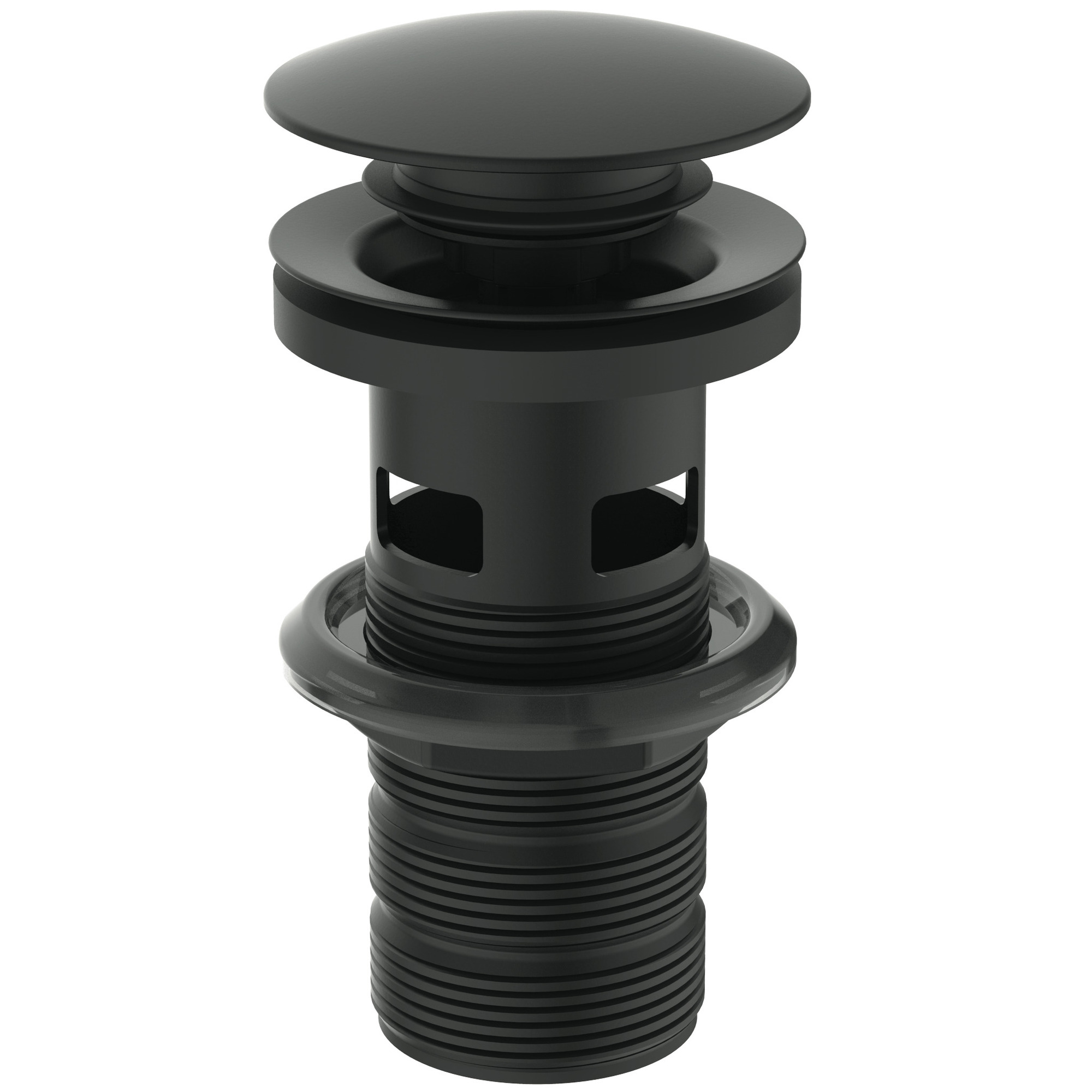 Click waste voor wastafels met overloop. Voorzien van snijlijnen om eventueel eenvoudig in te kunnen korten. Silk Black / mat zwart.