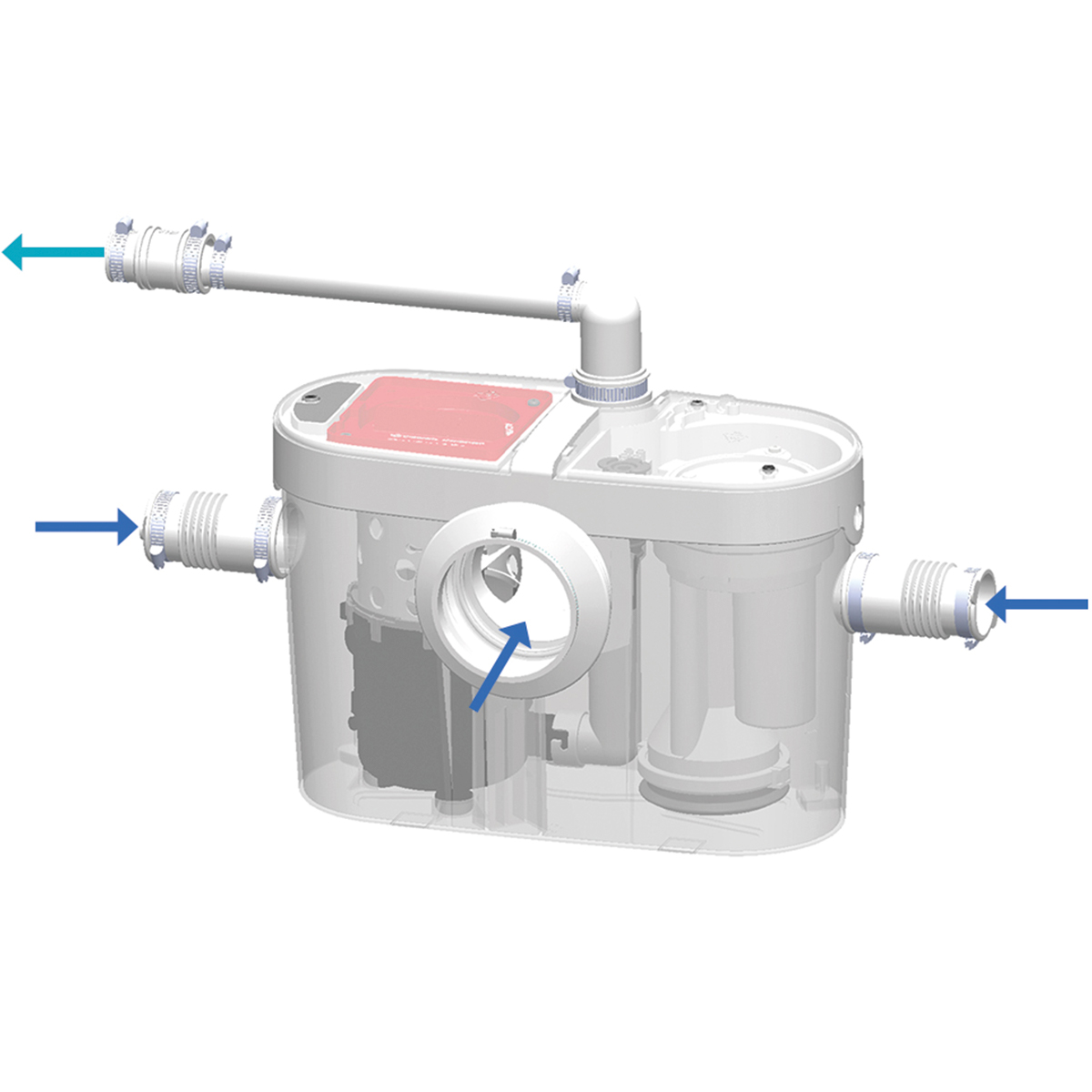 De Saniaccess 2 stelt u in staat om een toilet met een fonteintje te installeren met alleen een wateraansluiting, een afvoer van klein diameter en een stopcontact.De pomp is eenvoudig te installeren, compatibel met een standaard toiletpot (horizontale afvoer) en kan snel een oude pomp vervangen. Dankzij zijn stille motor (46 dB(A)) en compacte afmetingen blijft de Saniaccess 2 discreet.Het onderhoud van de pomp is eenvoudigd door de directe toegang tot de opvangbak (bij een blokkage) en de elektrische componenten.Wordt geleverd met een terugslagklep, een actief koolstoffilter en de benodigde aansluitingen.