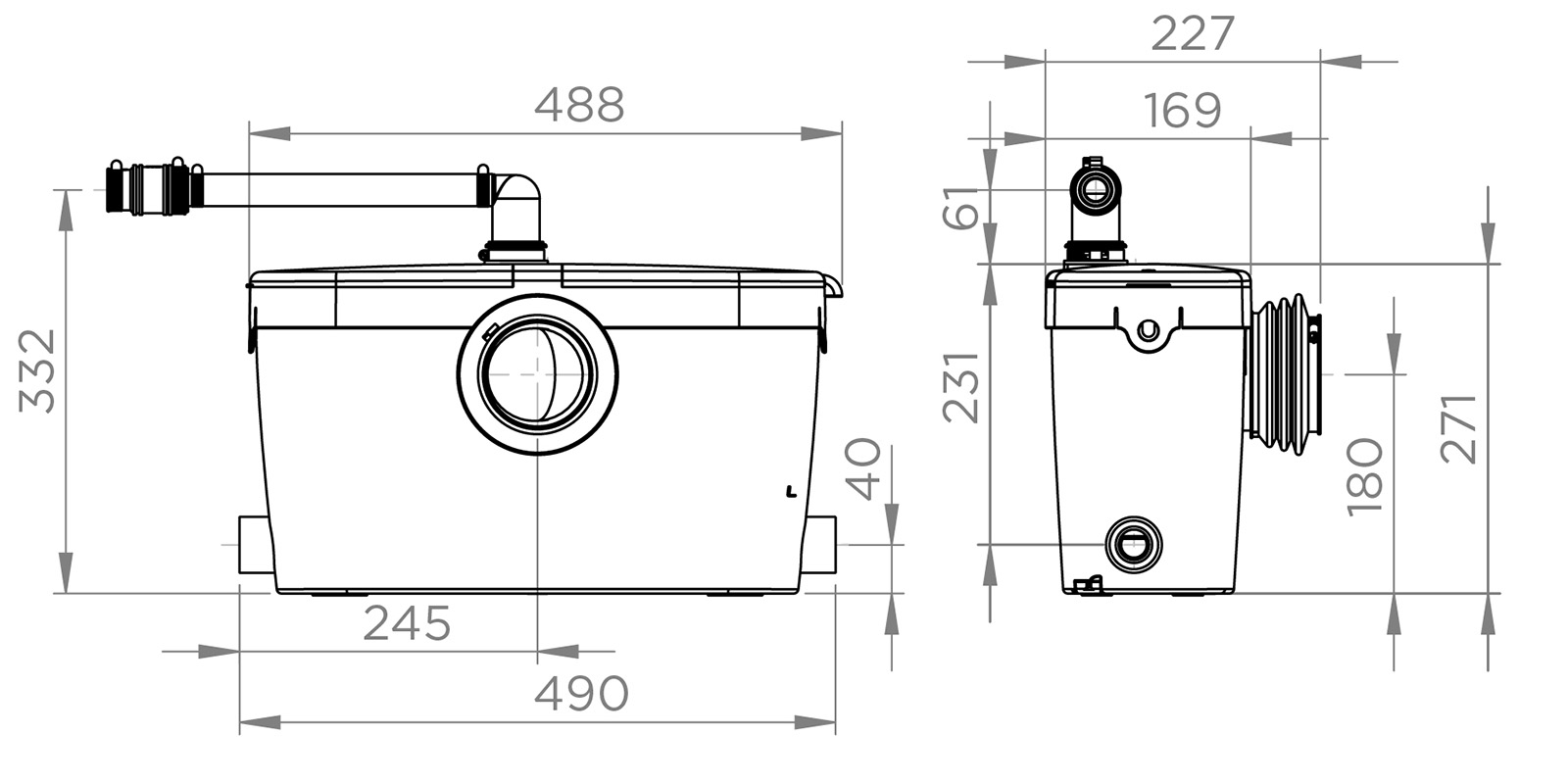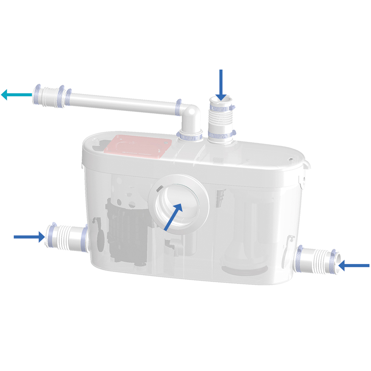 Met zijn krachtige maar stille motor (46 dB(A)) pompt de Saniaccess 3 afvalwater tot 5 meter verticaal en 100 meter horizontaal. Dankzij de 4 beschikbare inlaten kun je de volledige opstelling van een badkamer aansluiten: toilet, wastafel, douche en bidet.Hij is eenvoudig te installeren, vooral ter vervanging van een oude pomp, en is geschikt voor de meeste toiletten met een horizontale afvoer.De Saniaccess 3 biedt vereenvoudigd onderhoud dankzij de dubbele toegang die demontage en het legen van de tank vermijdt:Directe toegang tot de opvangkamer in geval van verstoppingToegang tot de elektrische componenten voor het vervangen van versleten onderdelenDeze toilet- en badkamerpomp wordt geleverd met een terugslagklep, een actief koolfilter en de nodige aansluitingen.