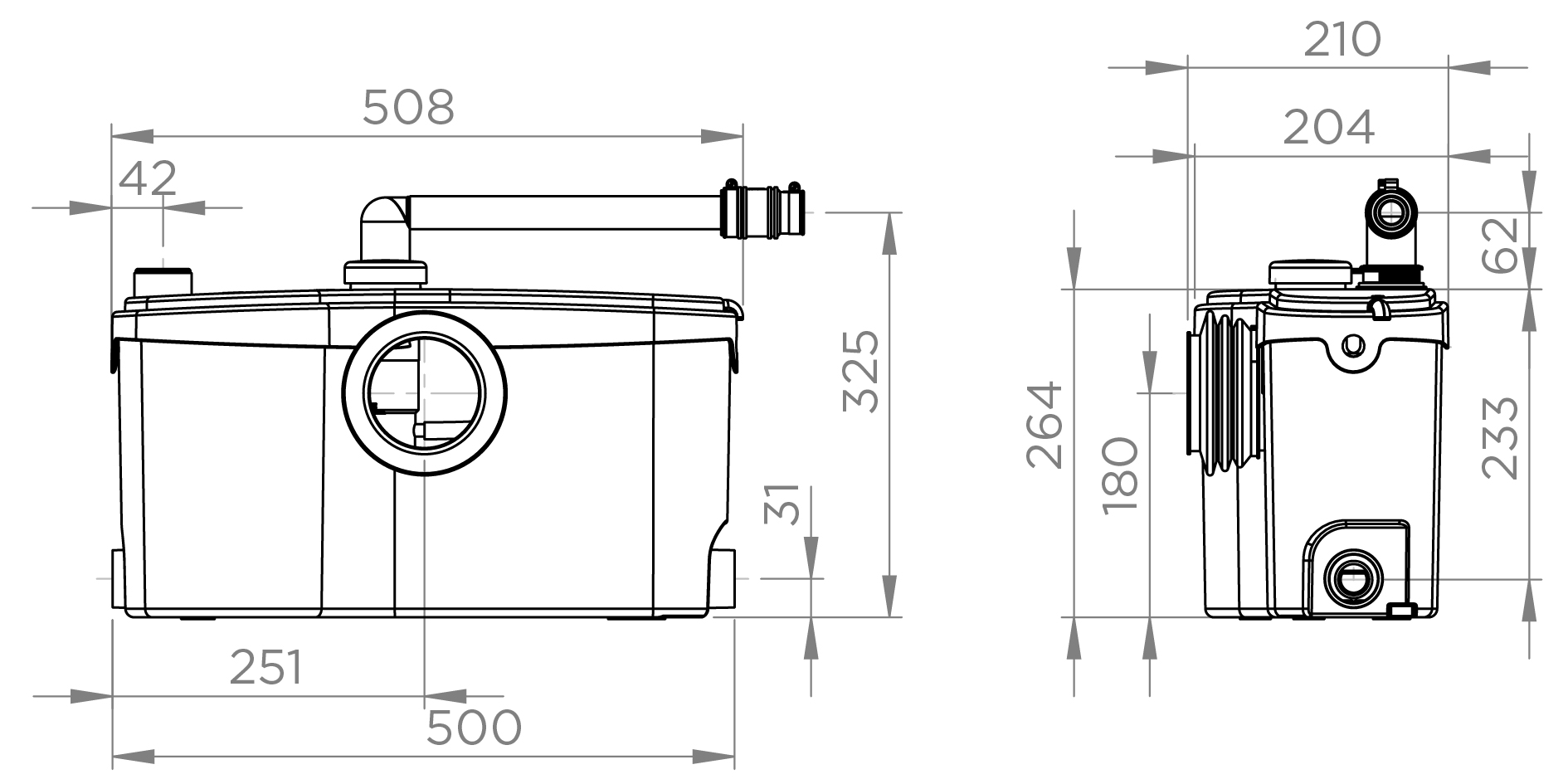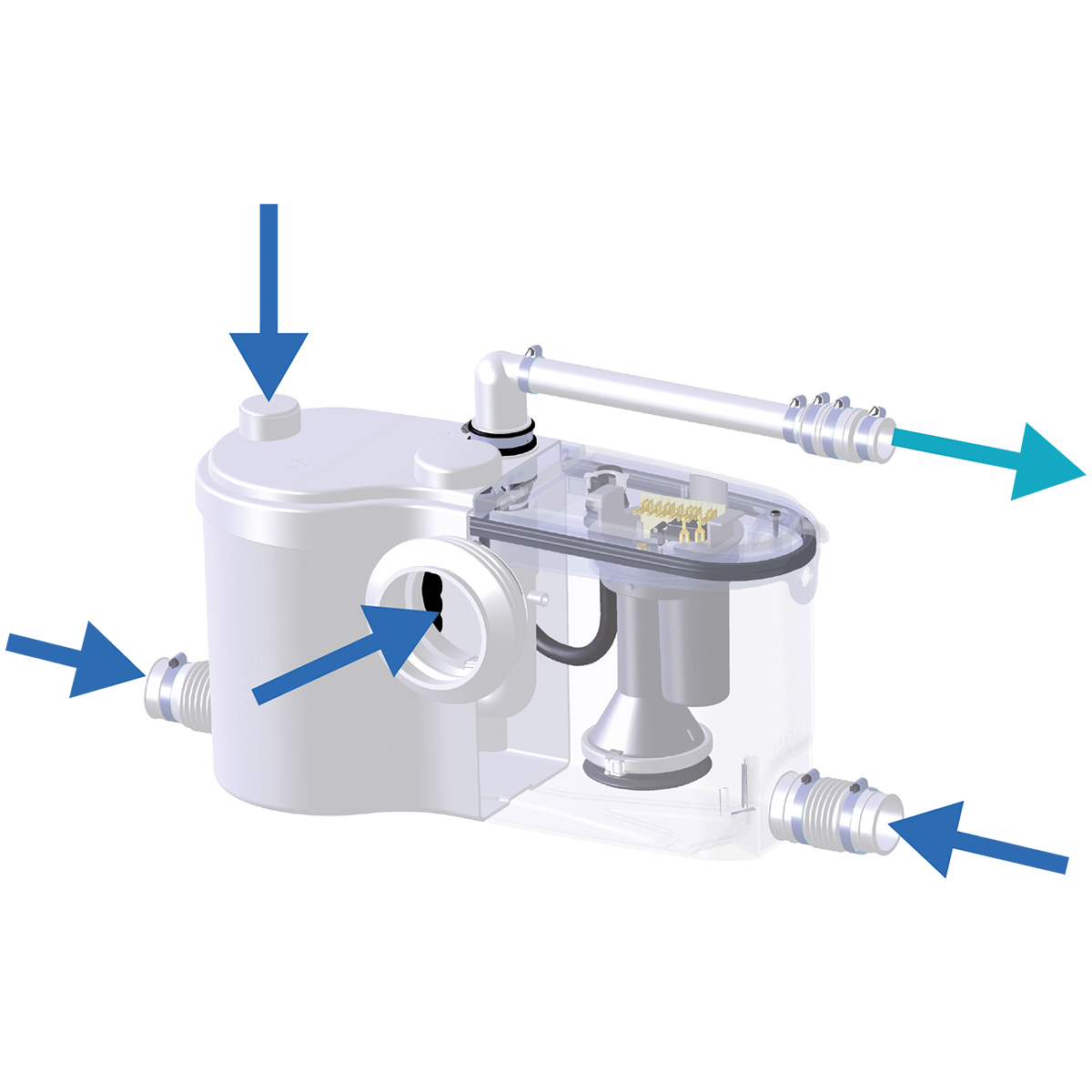 De Sanibest Pro wc- en badkamerpomp is uitgerust met 4 inlaten voor het aansluiten van een wastafel, een douche en een bidet, naast een WC. Zijn uitzonderlijke afvoercapaciteiten stellen hem in staat om afvalwater tot 7 meter verticaal of 110 meter horizontaal af te voeren, via een pijp met een diameter van slechts 22 tot 32 mm. Het uiterst krachtige Pro X K2 snijsysteem is perfect voor intensief gebruik, zoals in commerciële ruimtes of bij verhuur. De installatie is eenvoudig, en de pomp past op standaard WC’s met horizontale afvoer. De Sanibest Pro biedt directe toegang tot de elektrische componenten via het deksel voor vereenvoudigd onderhoud. Het apparaat wordt geleverd met een actief koolstoffilter, een terugslagklep en de benodigde aansluitingen voor installatie.