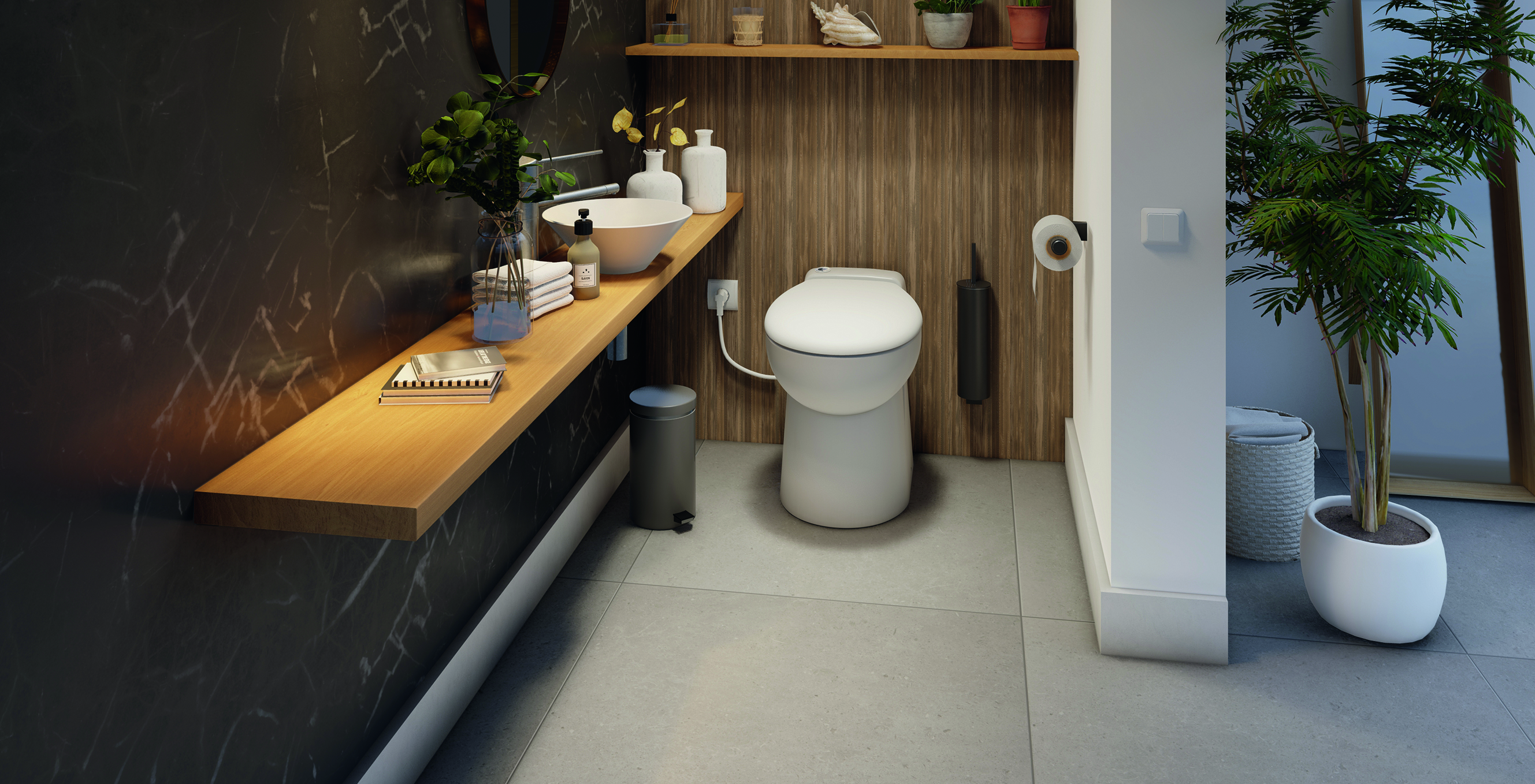 Ergonomisch en stijlvol, het Sanicompact Pro vermaler-WC maakt gebruik van de geavanceerde technologie van SFA om dagelijks comfort te bieden. Met een standaard en comfortabele zitting is de Sanicompact Pro zeer eenvoudig te installeren dankzij het bevestigingssysteem voor de vloer. Het Eco+ spoelsysteem helpt water te besparen in vergelijking met een traditioneel spoelsysteem, met slechts 1,8 tot 3 liter per gebruik.Voor eenvoudig dagelijks onderhoud is hij uitgerust met een afneembare antibacteriële zitting met softclose-mechanisme, en de keramiek is antikalk.Wordt geleverd met een terugslagklep, afneembare zitting en een bevestigingsset voor de vloer. Verkrijgbaar in twee uitvoeringen: een standaard versie en een versie met de mogelijkheid om een handwasbakje aan te sluiten.