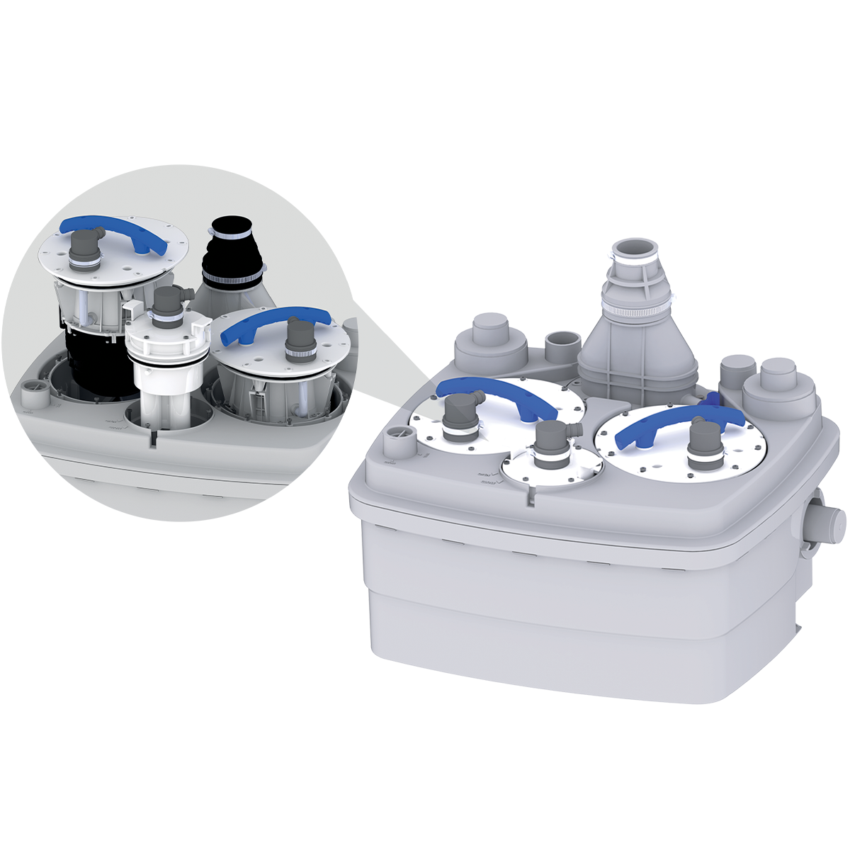 Sanicubic 2 Classic is een pompstation met 2 pompen, ontworpen voor het oppompen van afvalwatervan individuele woningen. Het profiteert van de Pro X K2 versnipperingstechnologie die de evacuatie vanafvalwater mogelijk maakt door een buis met een kleine diameter van 50 mm ext. Sanicubic 2 Classic is ideaalvoor intensief gebruik, zijn twee motoren werken in alle omstandigheden afwisselend. Het station wordtstandaard geleverd met een schakelkast met een hoorbaar en visueel alarm en een op afstand bekabeldealarmkast.