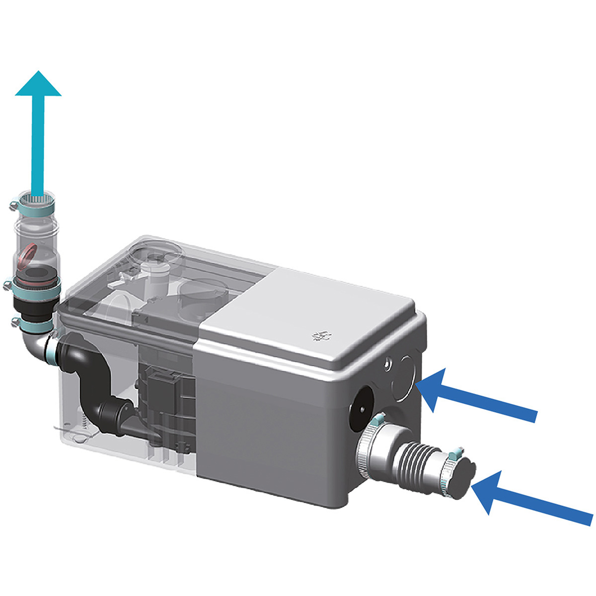 De Sanidouche Flat is speciaal ontwikkeld voor het makkelijk installeren van lage douchebakken. De pomp heeft 2 inlaten waardoor de aansluiting van een wastafel ook mogelijk is. De vuilwaterpomp wordt geleverd inclusief een extra vlakke sifon, die geschikt is voor vrijwel elk type douchebak in de markt. De Sanidouche Flat heeft een zeer laag aanslagniveau (30 mm). Ideaal voor meer flexibiliteit bij het plaatsen van een moderne douche in je woning, in elke ruimte waar (tijdelijk) een extra douche nodig is. Neemt weinig ruimte in, voor een discrete installatie.