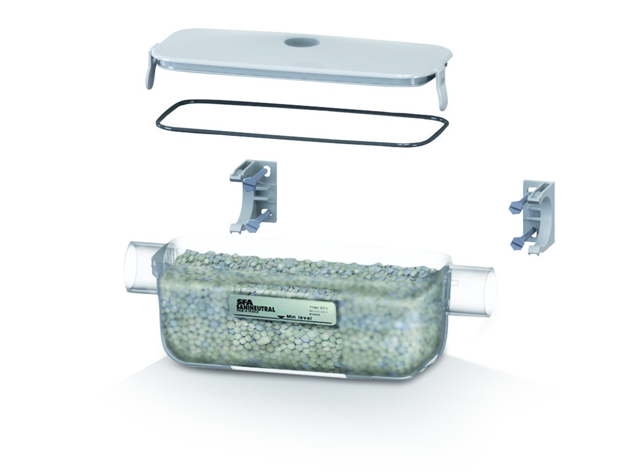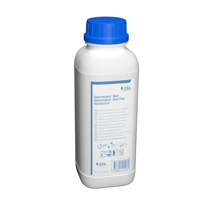 De Sanineutral neutraliseert het zure condensaat van een cv-ketel voor het condensaat wordt afgevoerd. De korrels beschermen zo het leidingwerk en het milieu. Werkt zonder pomp maar kan worden geplaatst voor een Sanicondens Pro. Het product is transparant voor het controleren van het korrelniveau. Met de korrels wordt de zuurgraad van de cv-ketel geneutraliseerd. De korrels worden meegeleverd en moeten na installatie van de Sanineutral elk jaar vervangen worden. Het systeem heeft 2 inlaten en een 1,2 kg tank. Eenvoudige interventie: de afdekplaat kan eenvoudig worden verwijderd zonder dat de buizen hoeven te worden losgekoppeld. Geschikt voor cv-ketels die aan de muur zijn bevestigd of op de grond geplaatst.