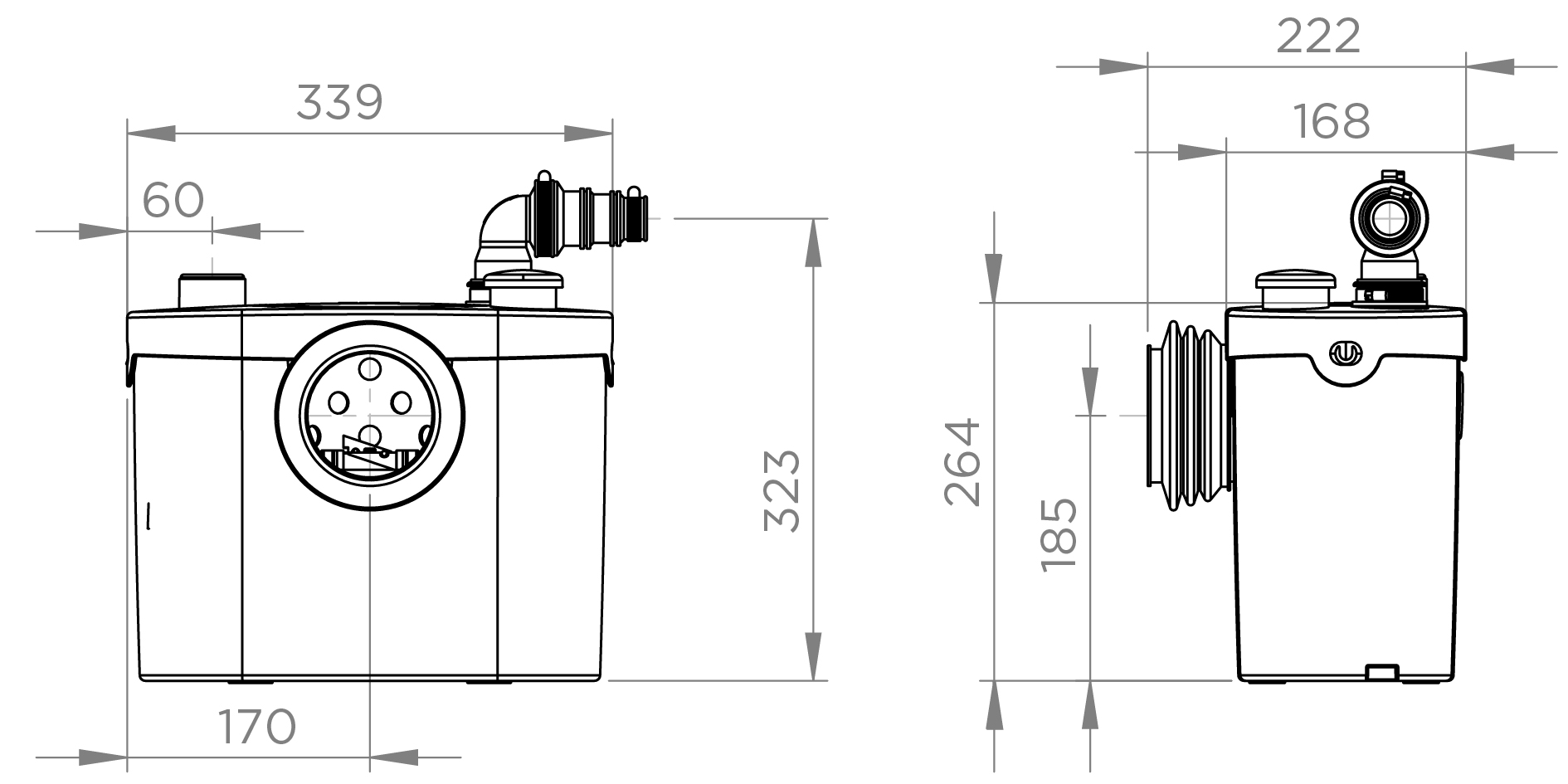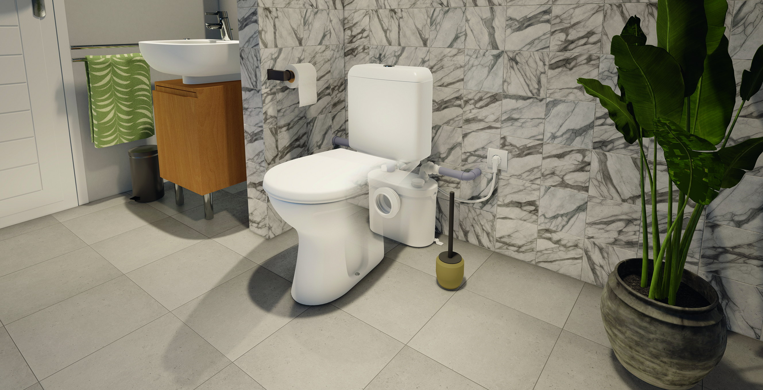 Uitgerust met 2 inlaten, stelt de Sanitop Up u in staat om een toilet en een wastafel te installeren. Het pompt afvalwater via een pijp met een diameter van 22 tot 32 mm, tot 5 meter verticaal of 100 meter horizontaal.Met zijn strakke ontwerp en stille motor (46 dB(A)) vindt hij gemakkelijk zijn plek achter een toilet met horizontale afvoer. Het kan ook eenvoudig een oude broyeur vervangen.Het is niet nodig om de broyeur te demonteren of te legen bij een verstopping, dankzij de directe toegang tot de mand.Wordt geleverd met terugslagklep, actieve koolstoffilter en aansluitstukken voor installatie.Optioneel kunt u ook de Sanialarm installeren, een apparaat dat een geluidsignaal geeft wanneer het waterniveau van uw apparaat te hoog is (storing of verstopping).