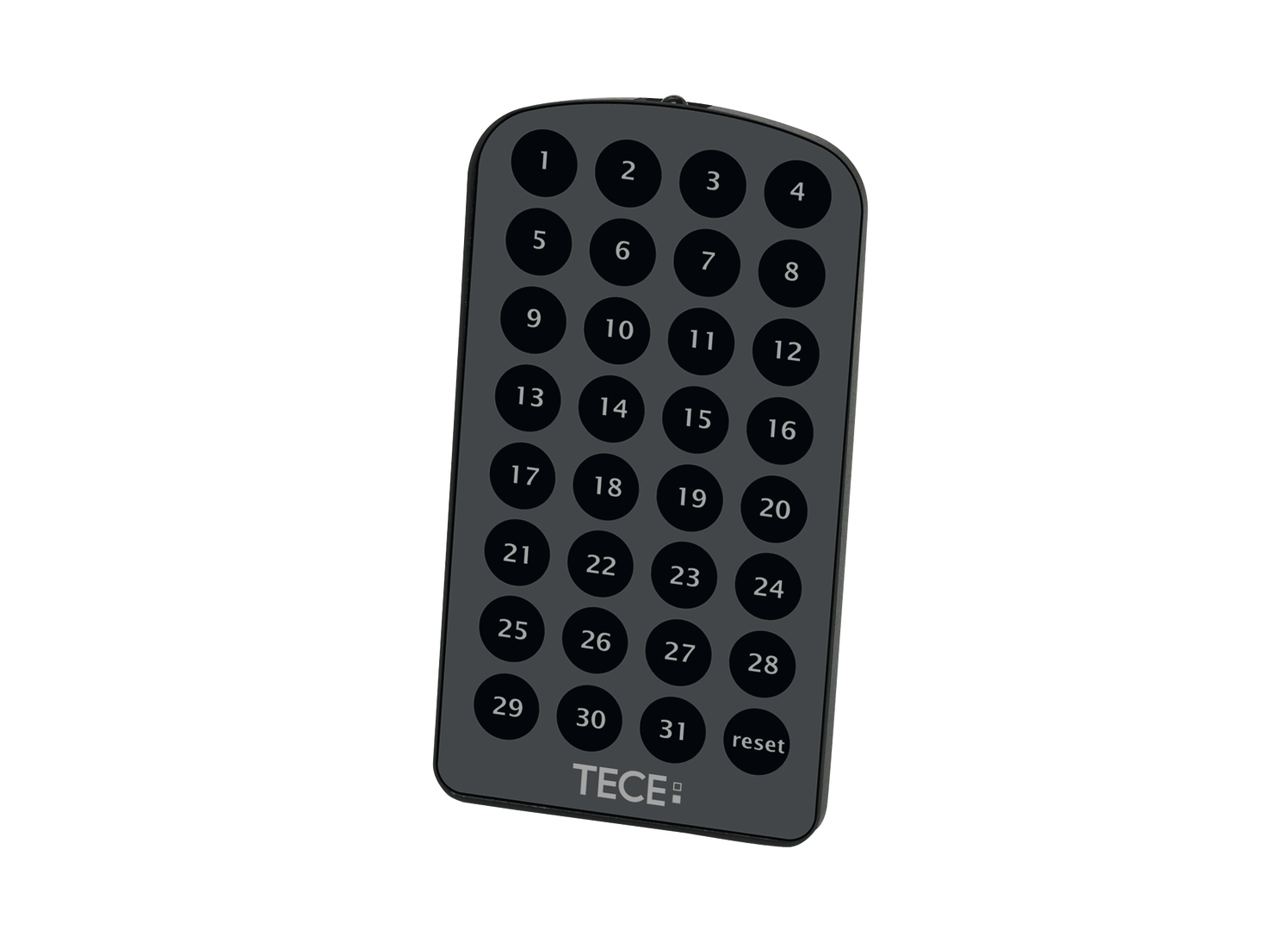 Afstandsbediening voor het programmeren van de TECElux Mini elektronica. Programmeerbare functies: herkenningsbereik, hygiënespoeling, activeringstijd, veiligheidsspoeling en lichtsterkte van de display.
