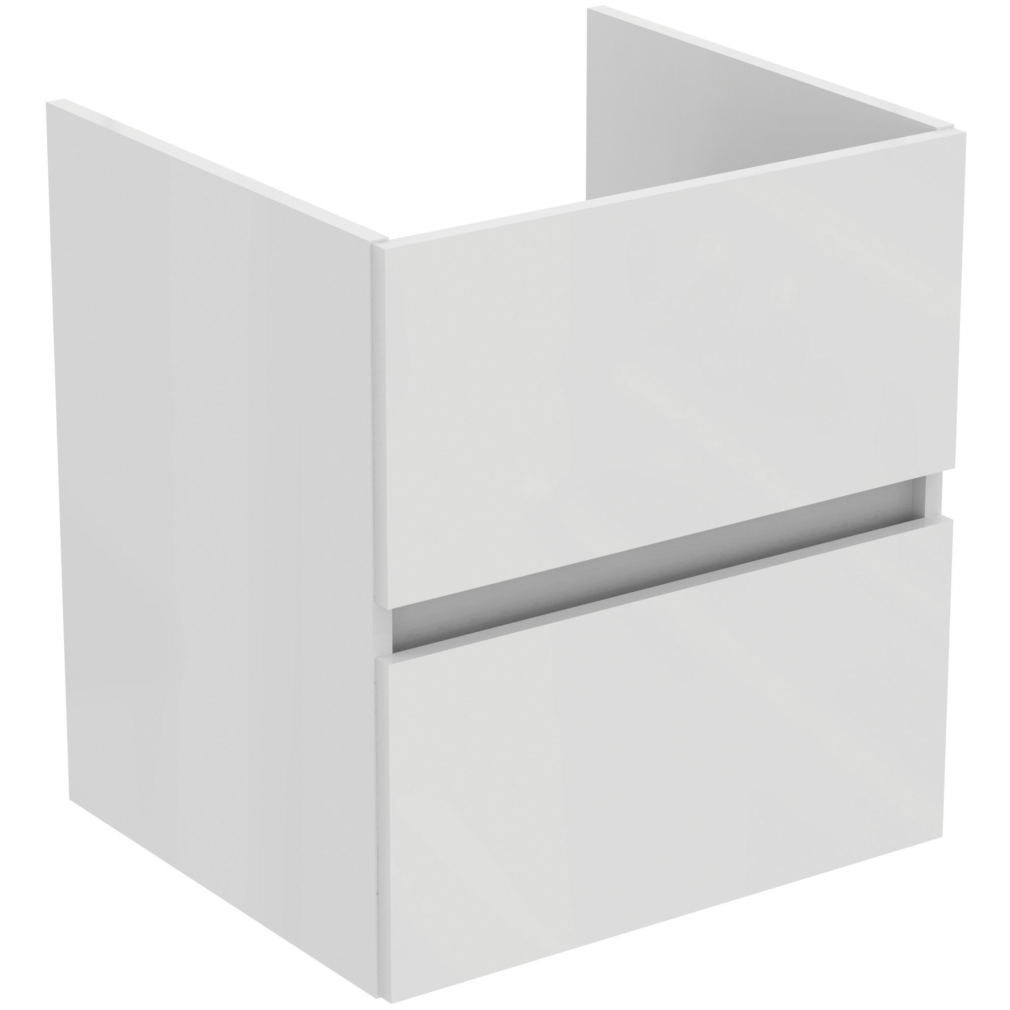 Tiempo wastafelmeubel 500 x 440 x 550 mm. Inclusief bevestigingsset. 2 laden pull-to-open met softclosing. Greeploos. T.c.m. wastafel 510 mm (E1099). Glanzend wit.