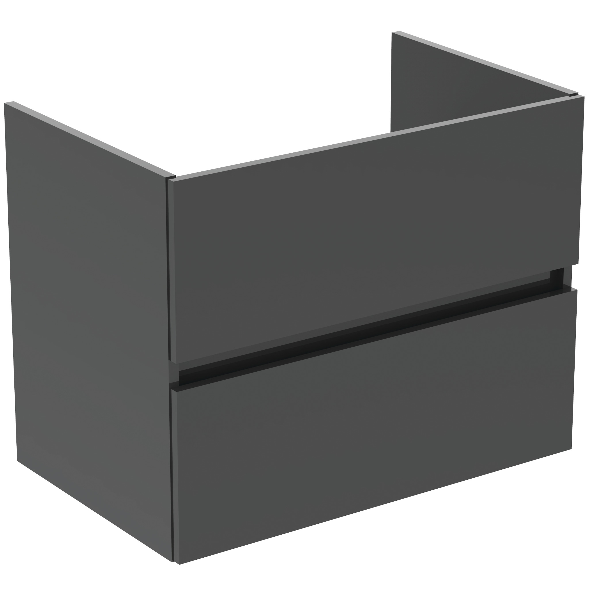 Tiempo wastafelmeubel 700 x 440 x 550 mm. Inclusief bevestigingsset. 2 laden pull-to-open met softclosing. Greeploos. T.c.m. wastafel 710 mm (E0535). Grijs.