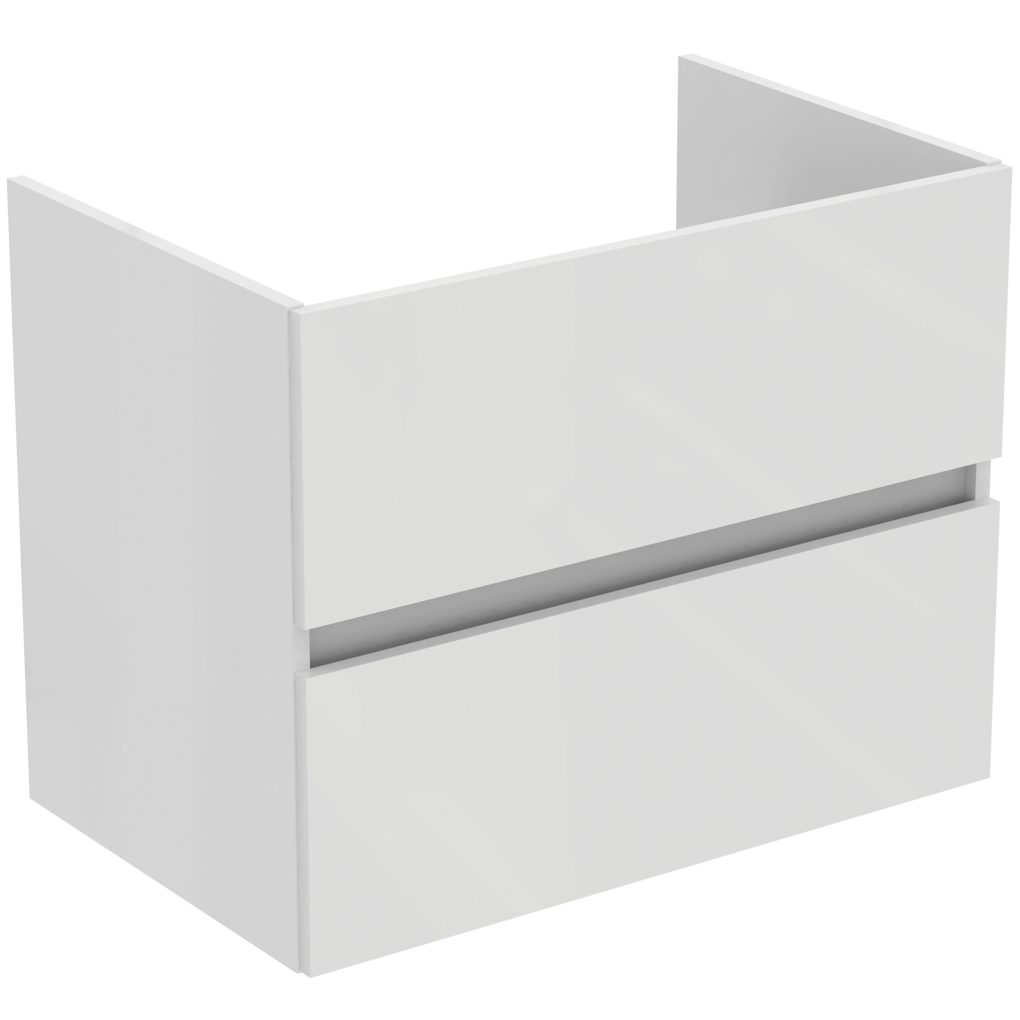 Tiempo wastafelmeubel 700 x 440 x 550 mm. Inclusief bevestigingsset. 2 laden pull-to-open met softclosing. Greeploos. T.c.m. wastafel 710 mm (E0535). Glanzend wit.